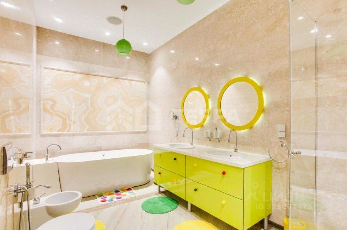 Новорижское шоссе, 14 км от МКАД. Вымпел. Сдается в аренду дом Дом, общей площадью 456 м.кв., расположен на участке в 100 сот. Водопровод - Централизовано. Гараж - Отдельный. Планировка: 1 этаж: прихожая, 2 гардеробных комнаты, с/у гостевой, блок: 2 спальни, ванная комната, кухня, столовая, гостиная с камином и выходами на террасу, кабинет, комната для хранения с холодильниками, постирочная., 2 этаж: хозяйская спальня с с/у и гардеробоной, холл/детская игровая, с/у с ванной и душем, 3 спальни, выход на просторную террасу. лот: 16298