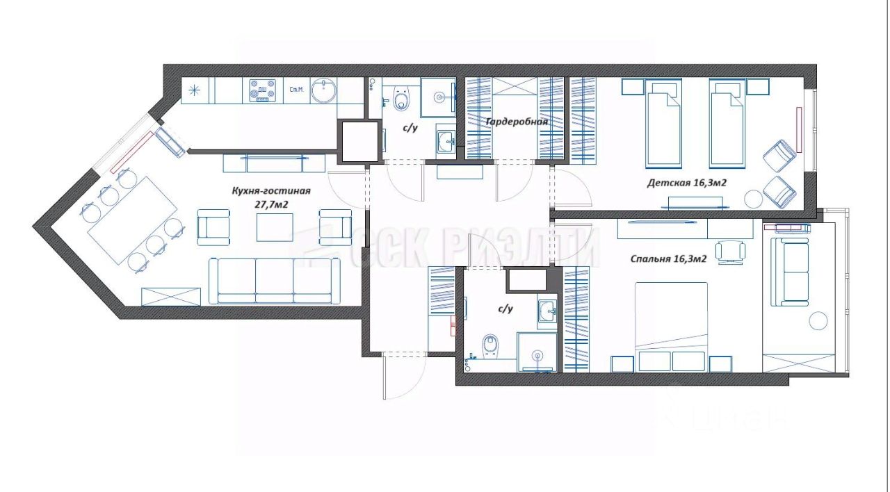 Квартира идеально подходит для семьи с одним или двумя детьми.