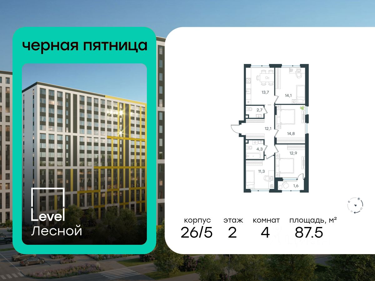 В районе, утопающем в густой зелени лесов, многочисленных парков и скверов, продаётся 4-комнатная квартира площадью 87.50 кв.м с отделкой white box. Квартира расположена на 2 этаже в жилом комплексе комфорт-класса Level Лесной (компания Level Group/Левел групп).