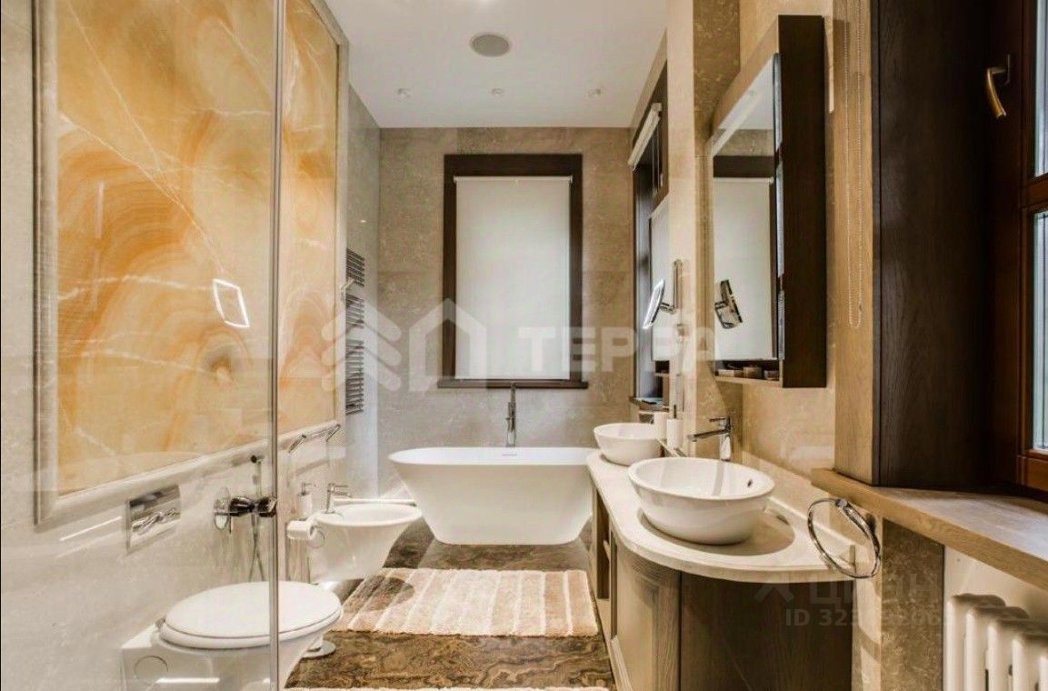 Новорижское шоссе, 14 км от МКАД. Вымпел. Продается дом Дом, общей площадью 450 м.кв., расположен на участке в 100 сот. Все коммуникации - центральные. Гараж - Отдельный. Планировка: 1 этаж: прихожая, 2 гардеробных комнаты, с/у гостевой, блок: 2 спальни, ванная комната, кухня, столовая, гостиная с камином и выходами на террасу, кабинет, комната для хранения с холодильниками, постирочная., 2 этаж: хозяйская спальня с с/у и гардеробоной, холл/детская игровая, с/у с ванной и душем, 3 спальни, выход на просторную террасу. лот: 16329