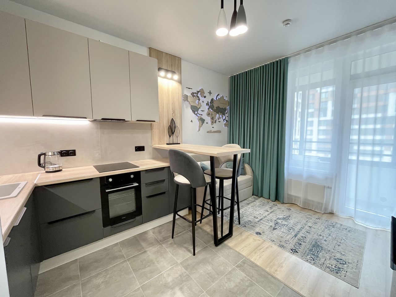 Уютная, ОЧЕНЬ ТИХАЯ однокомнатная квартира с качественным ремонтом и окнами во внутренний двор. Новый ремонт, ЕЩЕ НИКТО НЕ ЖИЛ. Кухня с выходом на лоджию укомплектована ВСЕЙ НЕОБХОДИМОЙ НОВОЙ ТЕХНИКОЙ (посудомоечная машина, духовая печь, микроволновая печь, варочная панель, холодильник, чайник, телевизор). С помощью раскладного дивана организовано дополнительное спальное место. Изолированная спальня позволяет чувствовать себя комфортно паре с разным режимом работы. Большое количество мест хранения. За дополнительную плату предлагается машино-место в подземном паркинге. ЖК Левел Лесной имеет развитую инфраструктуру, прекрасные дворы с детскими и спортивными площадками, сетевые магазины, ТРЦ Отрада, детские сады и школы.