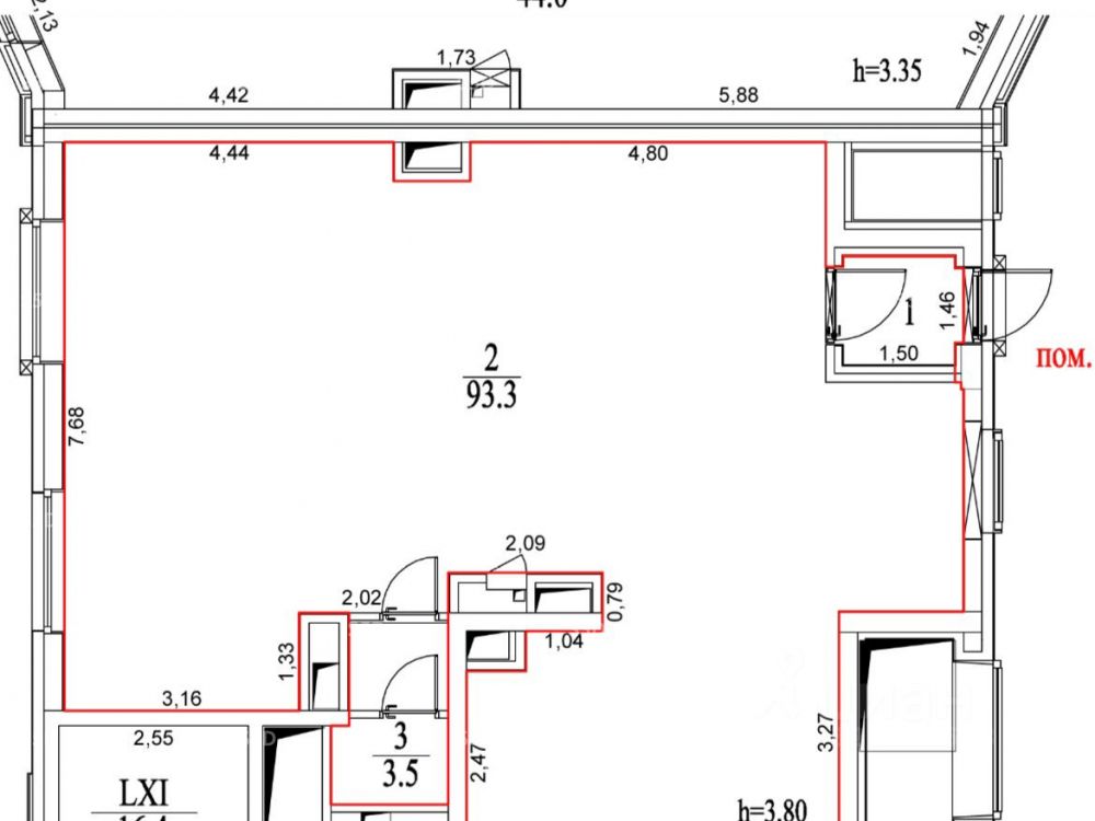 Технические характеристики: Общая площадь - 99 кв.м, 1й этаж 16-ти этажного жилого дома. Витринное остекление, высота потолков - 5 м. Электрическая мощность - 30 кВт.