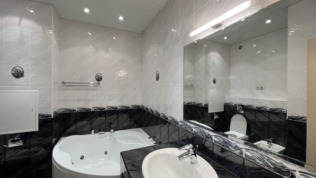СМОТРИТЕ ВИДЕО, ФОТО!!! КЛЮЧИ НА РУКАХ ПРОСМОТР В ЛЮБОЕ ВРЕМЯ!!! ЗАЛОГ МОЖНО РАЗБИТЬ НА 2 МЕСЯЦА!!! Квартира с дорогостоящим ремонтом, ремонт был выполнен по дизайн проекту, перепланировкой (кухня-гостиная, две изолированные спальни, в хозяйской спальне санузел, гардеробная комната), двумя полноценными совмещенными санузлами (душ кабина, ванна с гидромассажем + биде), ГАРДЕРОБНОЙ КОМНАТОЙ, пол - паркетная доска, плитка (в санузлах, коридоре и кухне ПОДОГРЕВ ПОЛА), три остекленные лоджии (2 лоджии в детской, 1 лоджия в спальне), видео домофон (камера на этаже), интернет. Квартира полностью меблирована!Из бытовой техники: холодильник, СВЧ, духовой шкаф, стиральная машина, три кондиционера, три ТВ и другие мелкие бытовые приборы будут Вас приятно радовать! Кухонный гарнитур с встроенной техникой, обеденной группой, бар стойкой. В КВАРТИРЕ ЕСТЬ ВСЕ ДЛЯ КОМФОРТНОГО ПРОЖИВАНИЯ, ОТ УТЮГА ДО ВИДЕО НАБЛЮДЕНИЯ!!!