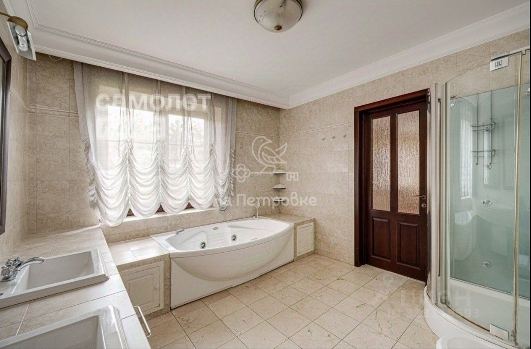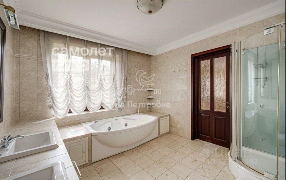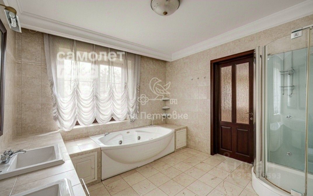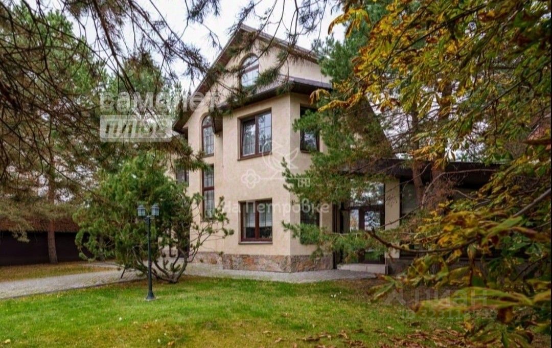 Коттедж расположен в тихом живописном месте недалеко от городской инфраструктуры. Дом построен из кирпича, имеет три этажа, верхний этаж мансардный, где находится спальня, кабинет и домашний кинотеатр. На втором этаже две спальни с санузлом на этаже и отдельная мастерспальнч со своей гидромассаж ной ванной и гардеробной. Площадь дома составляет 450 квадратных метров, а площадь участка - 37 соток.