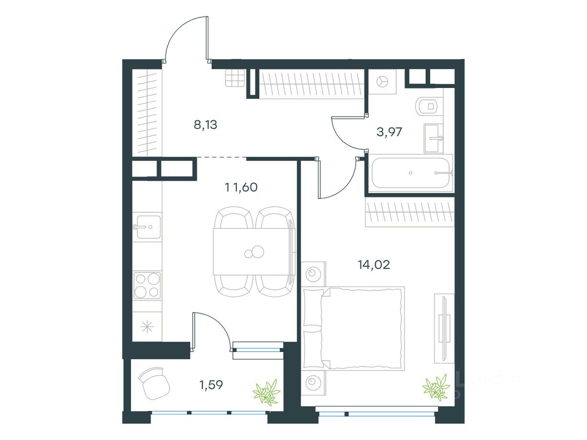Общая площадь39,3 м2