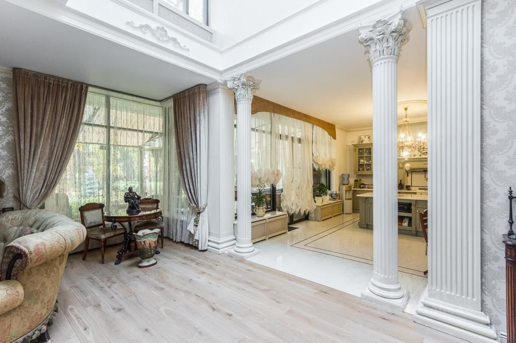 Предлагается Резиденция на Новорижском шоссе, вблизи бухты Живописная, в коттеджном поселке Резиденция Рублево в ландшафтно-рекреационной зоне Московской области. Коттеджный поселок на 140 резиденций расположен в лесном массиве площадью 20,61 Га. Фасады резиденций c натуральным камнем и ангарской сосной органично вписались в существующий природный ландшафт местности. Поселок хорошо вписан в природное окружение. Дом общей площадью 450 кв.м, расположен на участке 7 соток с индивидуальным выходом в парк. Планировочное решение Резиденции: холл, зона гостиной с столовой и кухней с выходом на террасу патио с выходом на участок и в парк. В доме 4 спальни каждая со своей гардеробной и сан.узлом, (мастер спальня общей площадью 80 кв м с двумя гардеробными и большим сан.узлом), кабинет, гостевой сан.узел, постирочная, гараж на два машино-места. Дом полностью меблирован, мягкая мебель PROVASI, антикварная мебель, сан.техника DEVON&DEVON и megliori, панорамное остекление высокие потолки. Резиденция оборудована видео-системой. Участок 7 соток, сделан ландшафтный дизайн, декоративный пруд, высажены плодовые деревья, яблоня, черешня, вишня, индивидуальный выход в парк. Поселок обслуживает Управляющая компания.