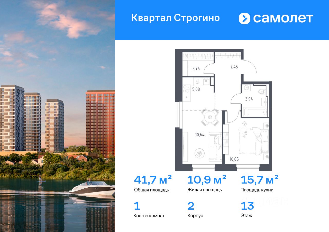 Строим кварталы для жизни с заботой о будущем. Предлагается 1-комнатная квартира комфорт-класса 41,72 кв.м в корпусе 2 на 13 этаже, в ЖК ''Квартал Строгино'' Квартира без отделки. Доступность опции ''отделка'' и возможность комплектации мебелью и декором уточняйте у застройщика.