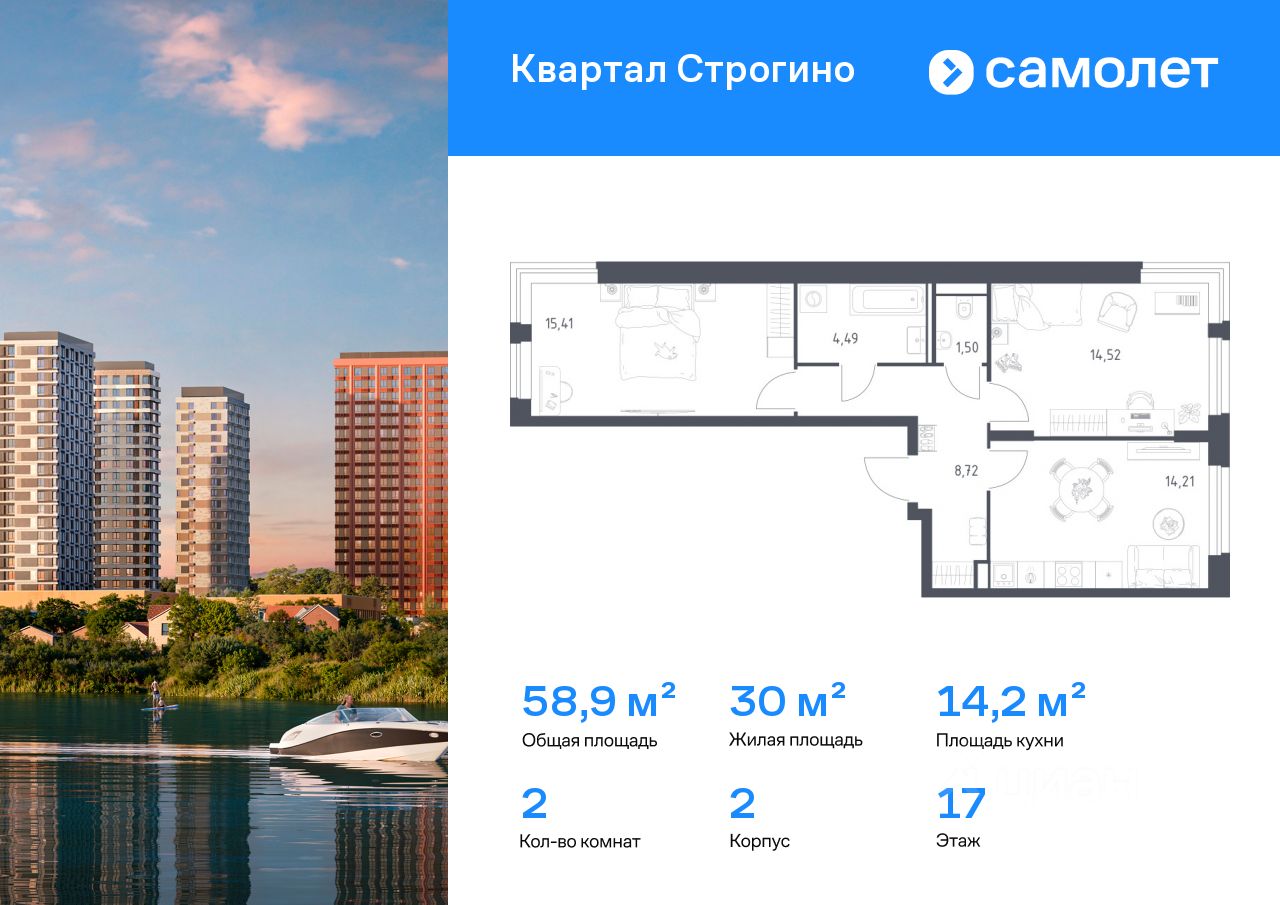 Строим кварталы для жизни с заботой о будущем. Предлагается 2-комнатная квартира комфорт-класса 58,85 кв.м в корпусе 2 на 17 этаже, в ЖК ''Квартал Строгино'' Квартира без отделки. Доступность опции ''отделка'' и возможность комплектации мебелью и декором уточняйте у застройщика.