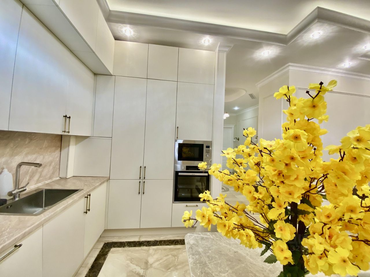 Предлагаем в аренду просторную 4-комнатную квартиру в ЖК Успенский квартал. Высокие потолки 3.3 метра создают ощущение простора. Планировка - кухня-гостиная , коридор, два санузла , три спальни , комната для хранения . В квартире сделан новый евроремонт, а значит, вам будет комфортно и приятно находиться в ней. Удобная планировка включает две ванные комнаты — одна с ванной, другая с душевой кабиной. В квартире есть все необходимое для жизни: кондиционер, холодильник, посудомоечная машина, телевизор и стиральная машина. Мебель установлена как в кухне, так и в комнате, поэтому можно сразу заезжать и жить.