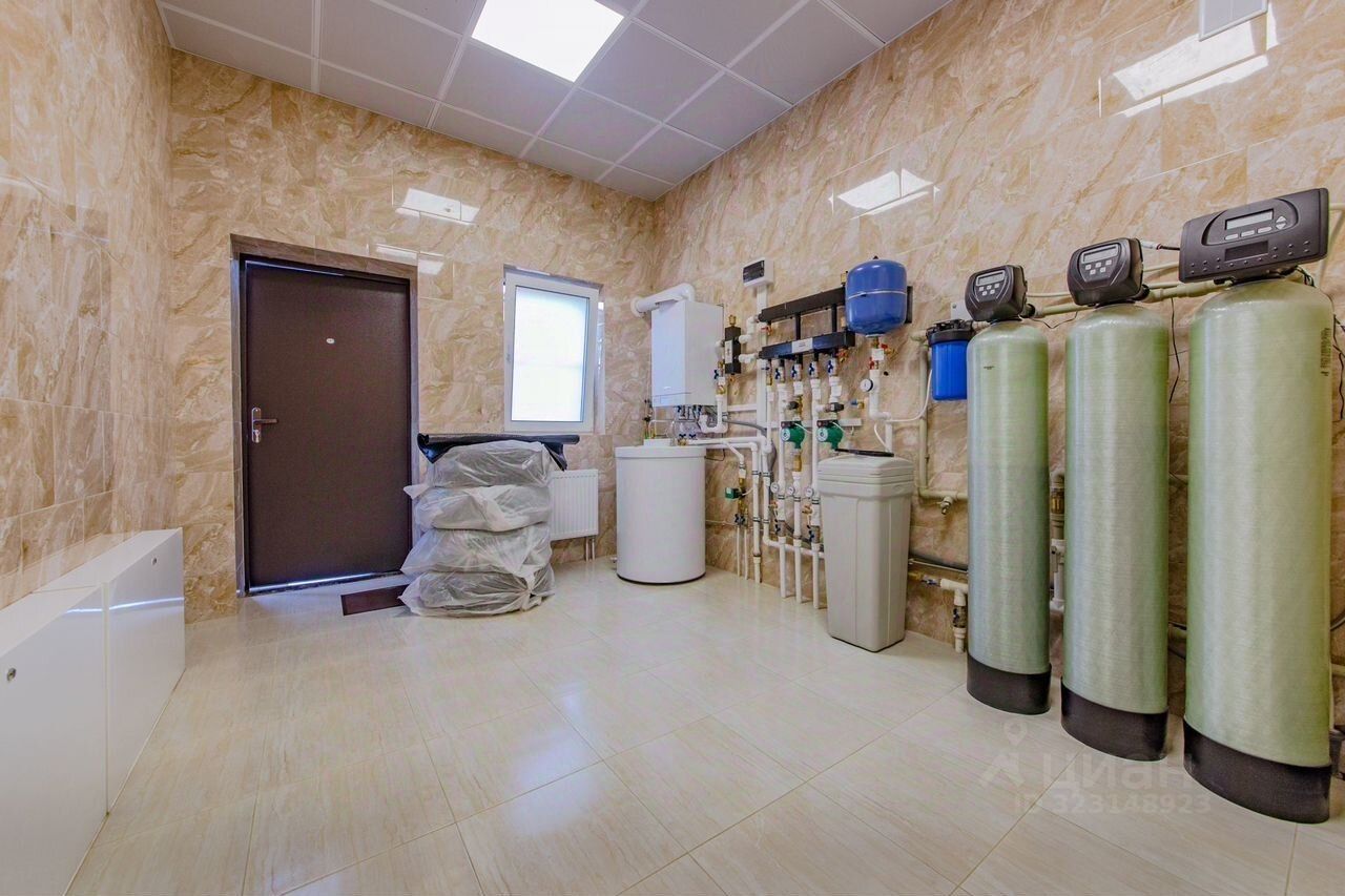 Гараж на 2 автомобиля, Навес на 3 автомобиля, 2-е террасы, прихожая, кухня-столовая с выходом на террасу, гостиная, 4-е с/у (с ванной и с душевой), 4-е спальни, 3-и гардеробные, сауна, комната отдыха, котельная, гараж (на 2-а м/м, отапливаемый, есть выход из гаража в дом), большая постирочная с системой хранения вещей, множество вспомогательных встроенный шкафов-купе. Кухня Аtlаs luх - Арт-Деко. Дом полностью меблирован и готов к проживанию. Газ, Канализация, Электричество и Вода Центральная.(На участке также установлен резервный Газгольдер на 7 м3). Интернет - оптико волокно . Система водоочистки. Все полы с водяным подогревом. Кондиционеры.