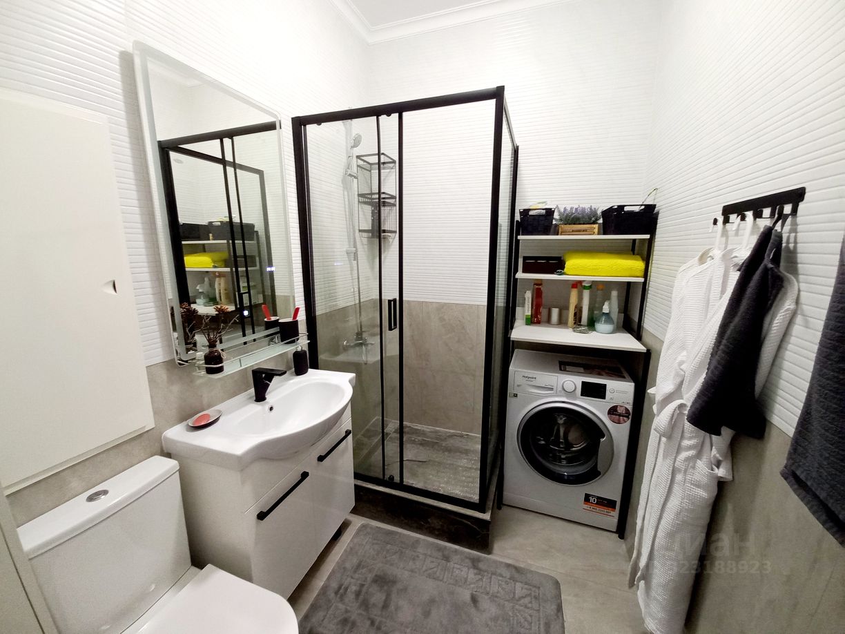 Есть всё необходимое. Кухонный гарнитур, варочная панель, вытяжка, холодильник, посудомоечная машина, много шкафов для посуды и разных кухонных принадлежностей, удобный барный стол и стулья. Большая двуспальная кровать, прикроватная тумба, пуф, кресло. Установлен кондиционер! Полностью оборудованный санузел с душевой кабиной, стиральная машина. В прихожей - зеркальный шкаф.