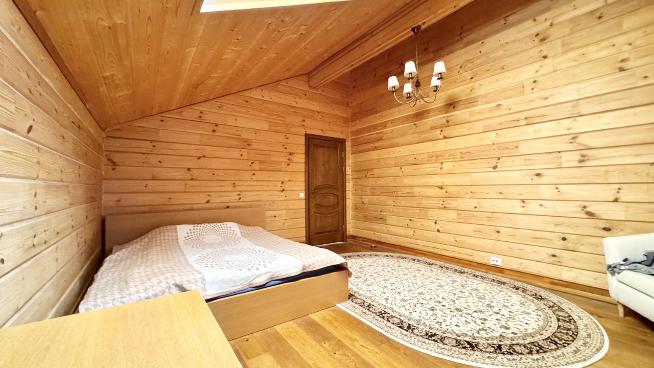 На длительный срок сдается шикарный двухэтажный деревянный дом с ухоженной территорией и сауной. На первом этаже большая гостиная, кухня, совмещенный санузел с джакузи, сауна, спальня, детская и кабинет. На втором этаже три изолированные комнаты, гардеробная и второй санузел с душевой кабиной. Для комфортного проживания имеется вся необходимая мебель и бытовая техника. Много мест для хранения. Заселение с 15.11.2025. По остальным вопросам звоните по телефону или пишите в чат.