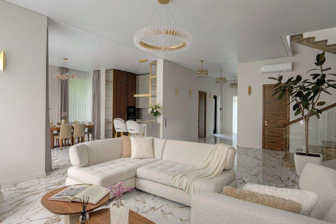 ОПИСАНИЕ: Новый дом в живописном месте. Современный стиль, большая площадь остекления, продуманная планировка. Удобная локация, быстрый выезд на Рублево-Успенское или Новорижское шоссе. Рядом музей-усадьба Архангельское. Фасад дома облицован натуральным камнем, цоколь из гранита. Въездная группа, терраса и дорожки вымощены из брусчатки. Дом полностью меблирован, отделка в доме выполнена с использованием высококачественных материалов - ценных пород дерева, шпона, натурального камня, мрамора, текстиль премиального качества, уровневое освещение, встроенная мебель индивидуального изготовления. Установлена система вентиляции с климат-контролем в каждом помещении. На участке располагается уютная беседка с зоной отдыха, а также отдельно стоящий гостевой дом с двумя спальнями и кухней.