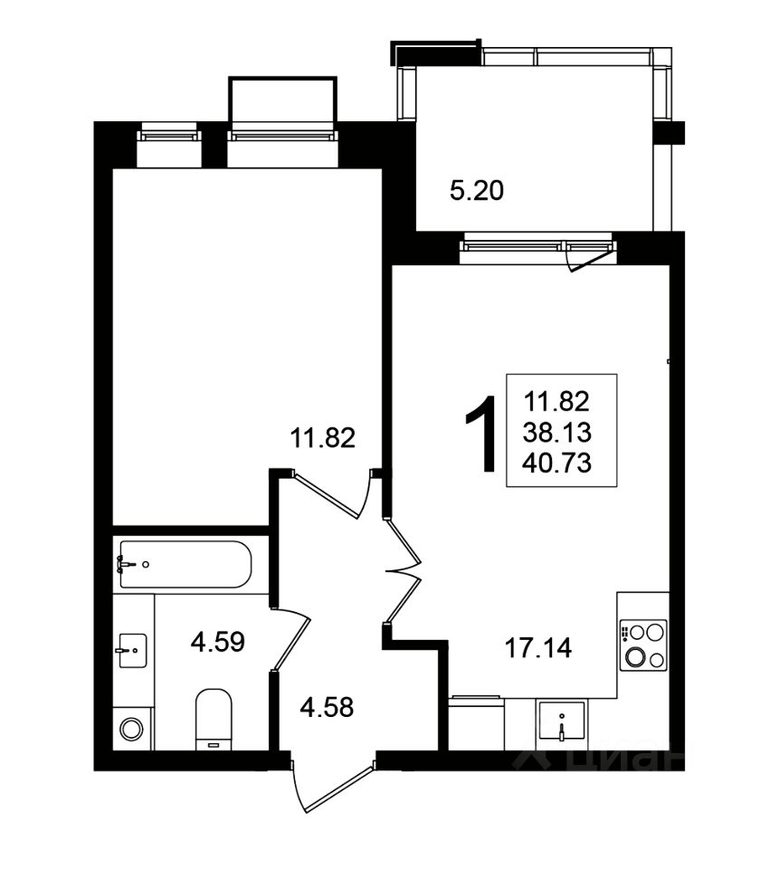 Продаётся 1-комнатная квартира в строящемся доме (Корпус 7), срок сдачи: 4-кв. 2025, общей площадью 40.73 кв.м., на 4 этаже.