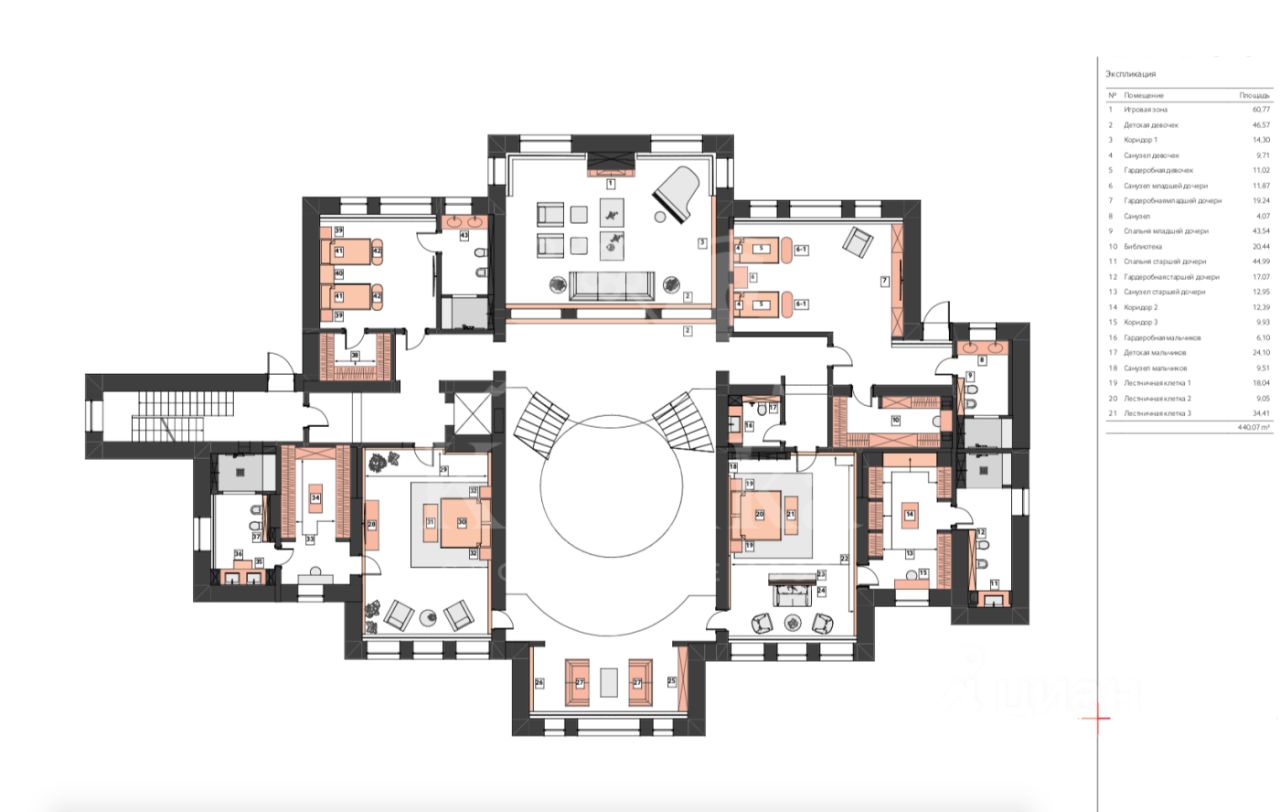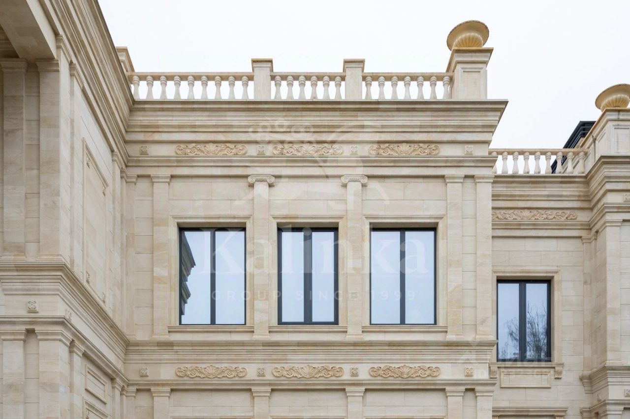 Предлагается особняк в классическом стиле площадью 2230 кв. м на участке 35 соток в элитном охраняемом поселке Агаларов Эстейт. Дом расположен в старой части поселка, в тихом и уединенном месте. Фасад дома отделан натуральным камнем, украшен колоннами, балясинами и барельефами. Внутреннее состояние дома ''без отделки''. Большая площадь остекления, очень высокие потолки, гараж на 4 машины, 6 спален, блок для персонала. На участке высажены декоративные деревья, территория огорожена. Есть возможность увеличить площадь участка.