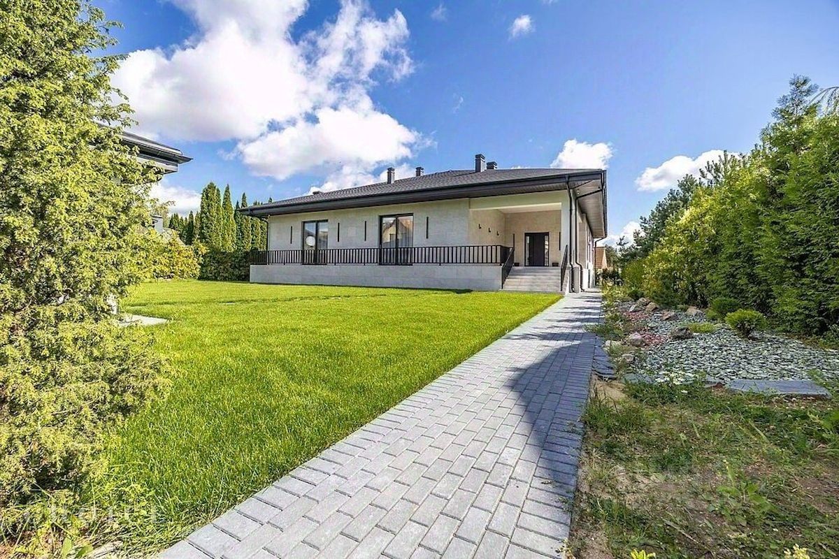 Лот 47444. Одноэтажный новый дом с 4-мя спальнями, общей площадью 995 м², представлен ''под ключ'' и расположен на видовом участке 15.3 соток. Продуманная планировка включает: большую гостиную с камином и выходом на лоджию, мастер-спальню с ванной, 2 спальни со своими санузлами, кабинет, который можно сделать дополнительной спальней. На цокольном этаже: сезонная гардеробная, винный погреб, СПА-зона с хаммам и тренажерным залом. Имеется отдельный блок для персонала. Высокие потолки (3,8 м.) и панорамные окна ''в пол'' визуально увеличивают пространство, делая дом светлым и уютным. Отдельно построен гараж для 4-х автомобилей с комнатой для охраны. На ровном участке выполнен ландшафтный дизайн.