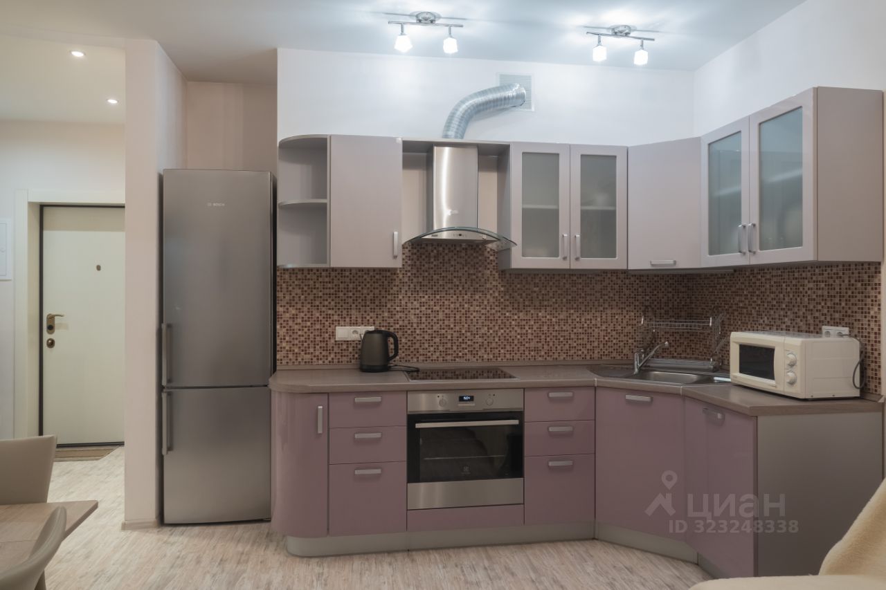 Кухня-гостиная с диваном (раскладывается в спальное место), большая лоджия-кабинет, отдельная комната-гардеробная. Кондиционер, холодильник BOSH, бойлер в ванной.