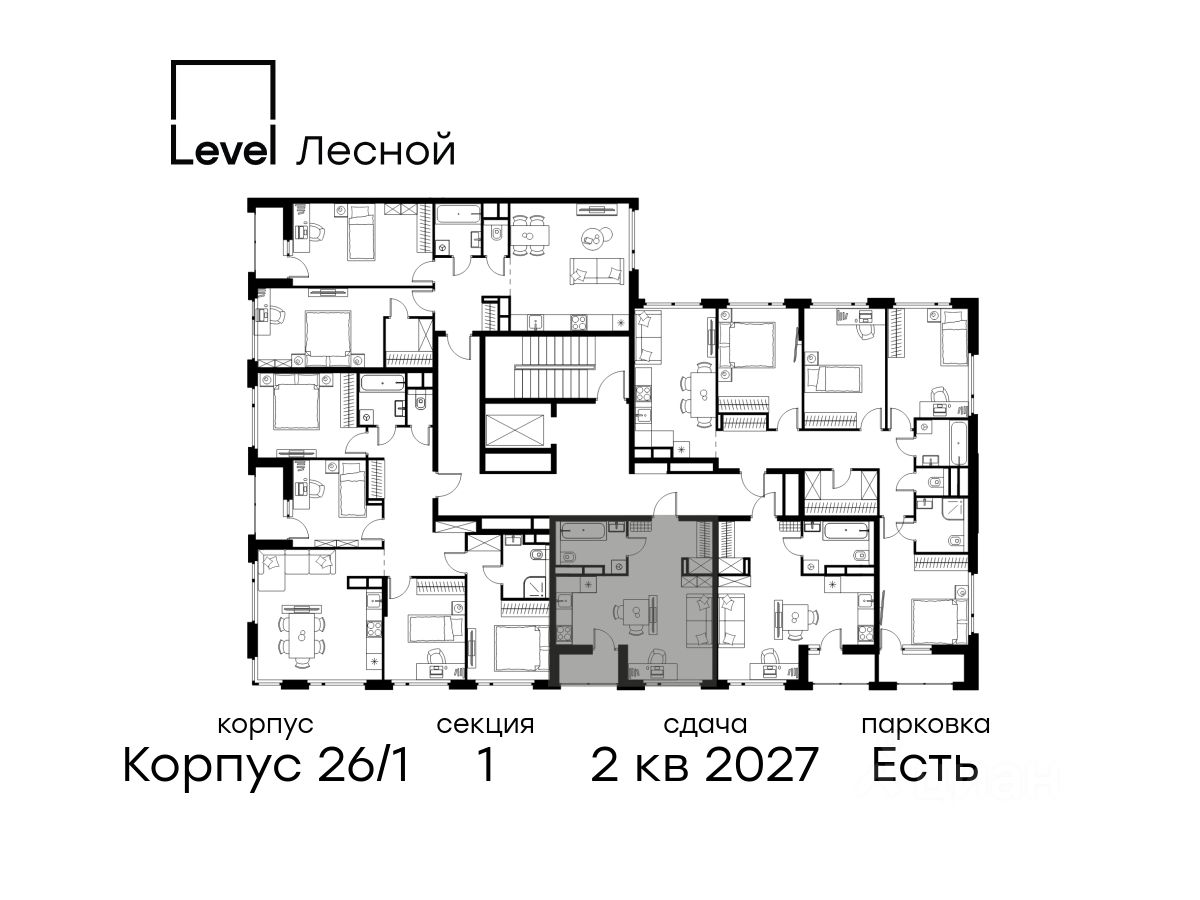 В районе, утопающем в густой зелени лесов, многочисленных парков и скверов, продаётся студия площадью 30.90 кв.м с отделкой white box. Квартира расположена на 8 этаже в жилом комплексе комфорт-класса Level Лесной (компания Level Group/Левел групп).