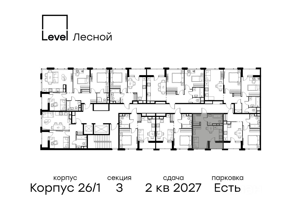 В районе, утопающем в густой зелени лесов, многочисленных парков и скверов, продаётся студия площадью 27.60 кв.м с отделкой white box. Квартира расположена на 12 этаже в жилом комплексе комфорт-класса Level Лесной (компания Level Group/Левел групп).