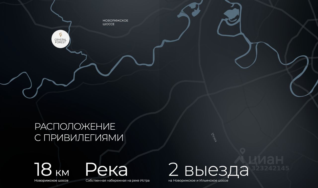 Локация: • 19 км от МКАД по Новорижскому шоссе, • 30 минут до центра Москвы, • Два выезда: на Новорижское и Ильинское шоссе — уникальная логистика,