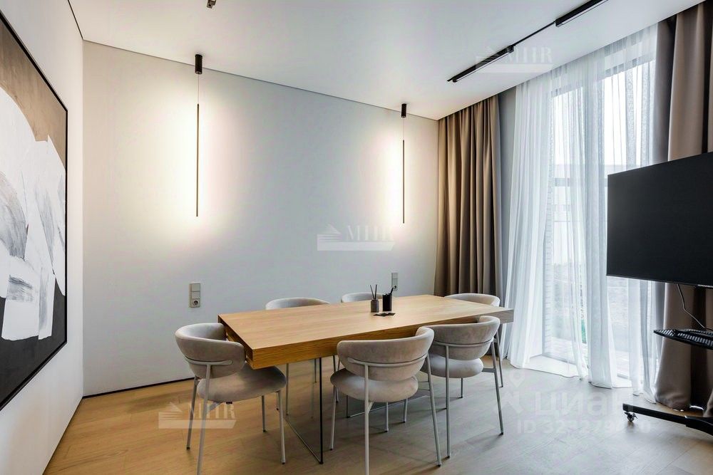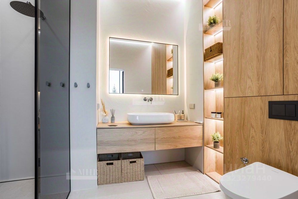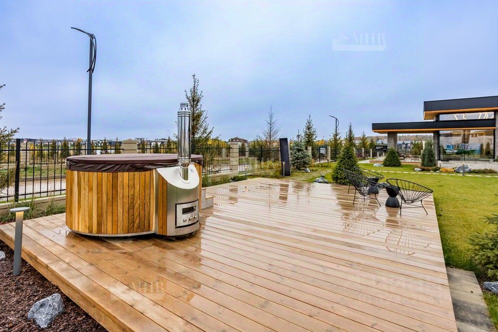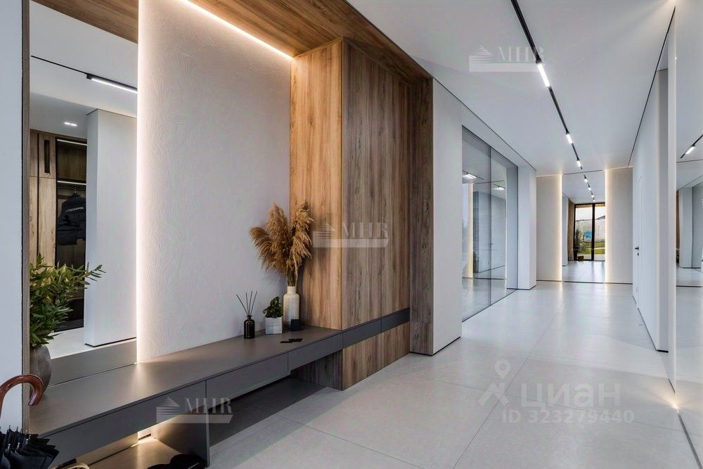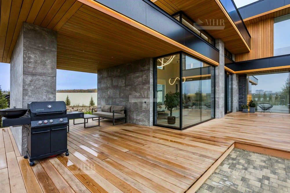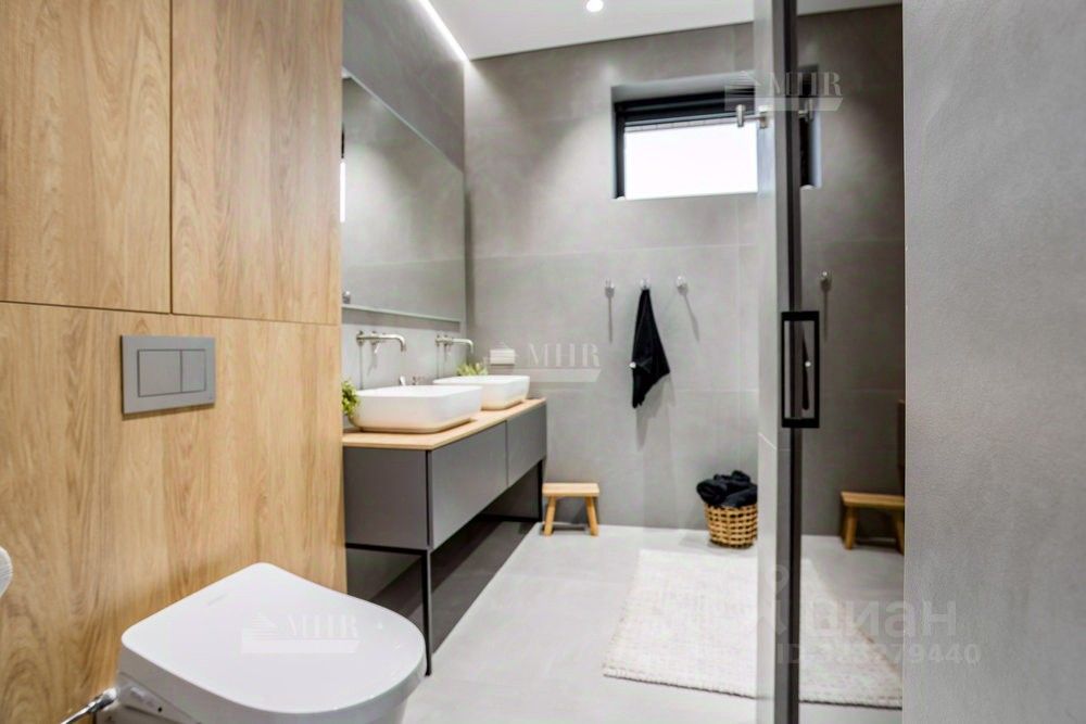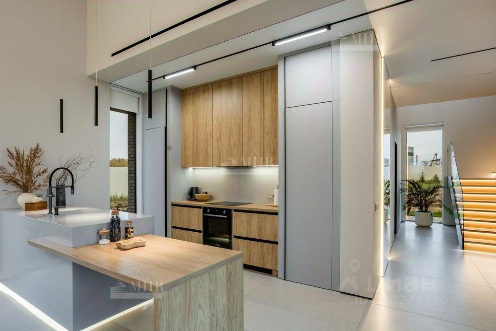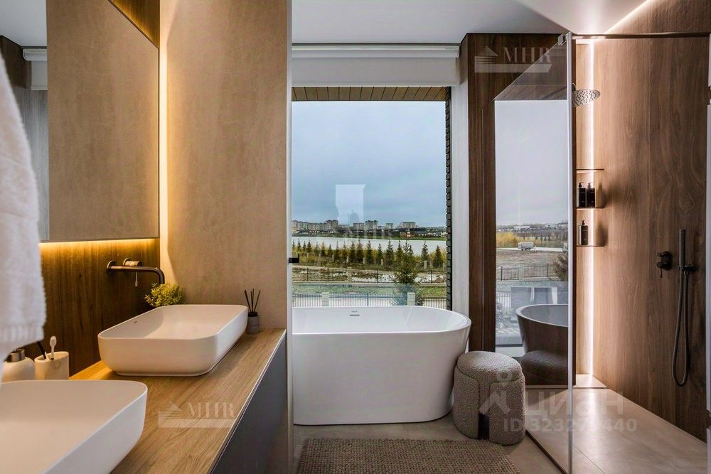 ID 9018 Без комиссии для покупателя. Предлагается к продаже новый двухэтажный дом в стиле хай-тек с безрамным панорамным остеклением, уютной костровой зоной и шикарными видами на озеро. Удостоен высокого звания ''Победитель выставки Open Village 2025'' — лучший дом по мнению и жюри, и посетителей! Планировка: 1 этаж: прихожая с гардеробной, просторная кухня-гостиная (48 м²) с выходом на террасу, черновая кухня (кладовая), котельная с отдельным входом и лапомойкой для собаки, гостевая спальня с гардеробом, санузел с душевой 2 этаж: мастер-блок с гардеробом, санузлом и балконом, две детские комнаты, постирочная, детский санузел Инженерия: Котельная: газовый котёл De Dietrich,бойлер на 200 литров, стабилизаторы напряжения, Отопление: водяные тёплые полы на 1 и 2 этажах,радиаторы в жилых помещениях,водяные тёплые стены и полотенцесушители, Вентиляция и кондиционирование: приточно-вытяжная система с рекуперацией,канальное кондиционирование со скрытыми блоками, Электрика и безопасность:видеонаблюдение,ландшафтное освещение,электрозарядка для авто.