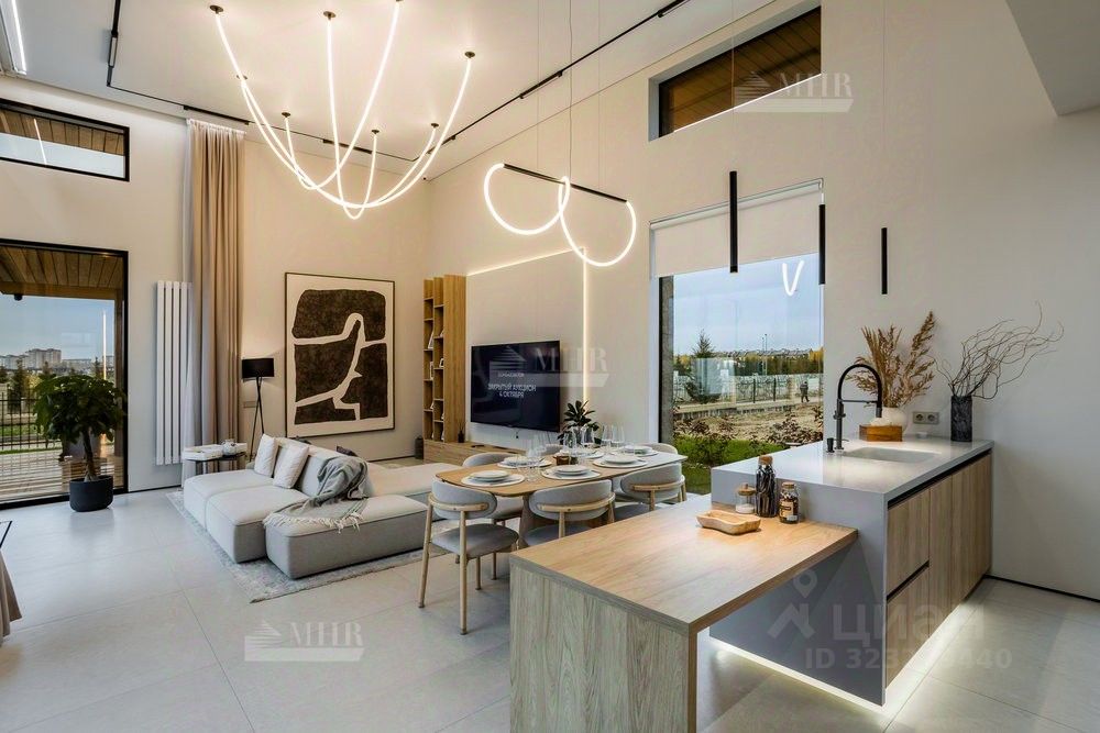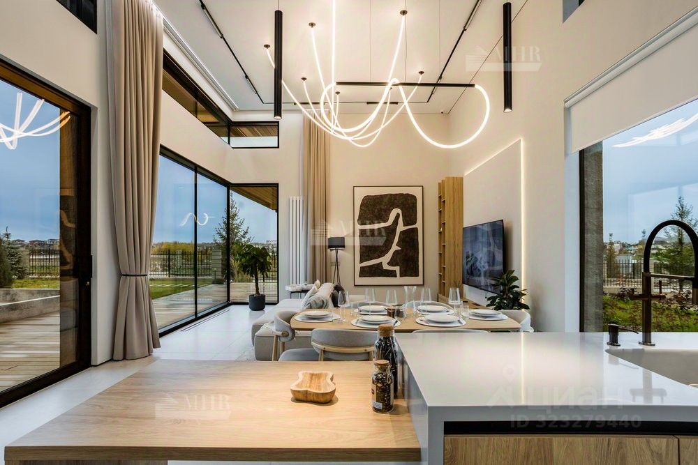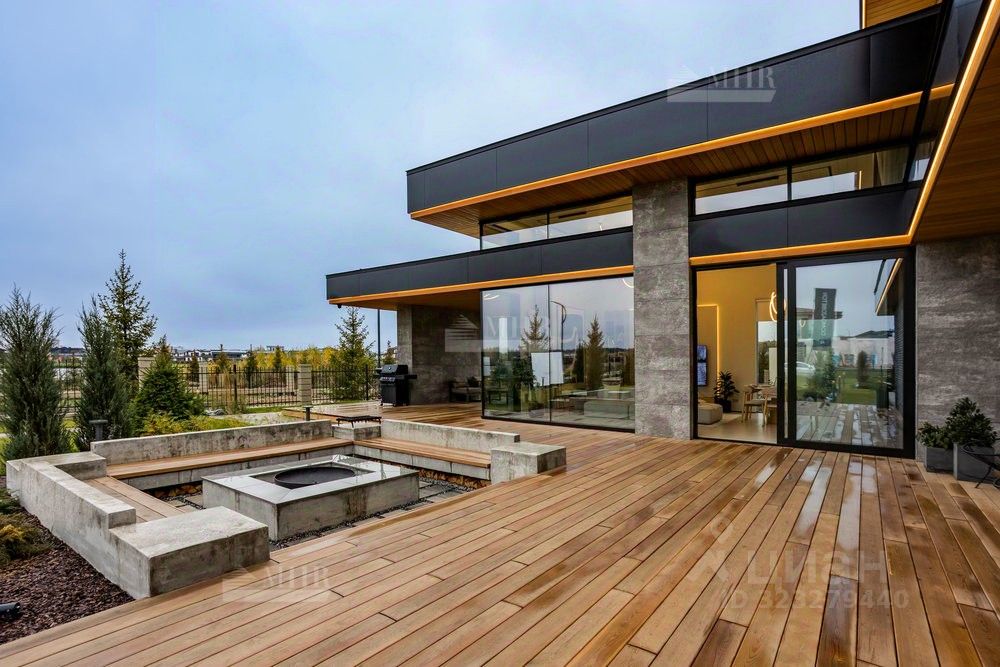 ID 9018 Без комиссии для покупателя. Предлагается к продаже новый двухэтажный дом в стиле хай-тек с безрамным панорамным остеклением, уютной костровой зоной и шикарными видами на озеро. Удостоен высокого звания ''Победитель выставки Open Village 2025'' — лучший дом по мнению и жюри, и посетителей!