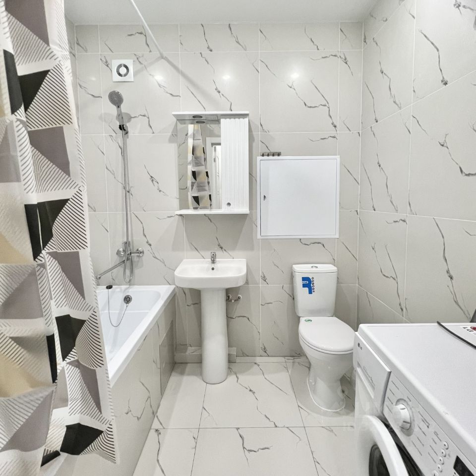 В квартире сделан качественный евроремонт, благодаря чему она выглядит стильно и современно. Просторная кухня оборудована всей необходимой мебелью и техникой, включая холодильник и стиральную машину. В комнате есть мебель, а также установлен телевизор. Санузел совмещённый с ванной, что удобно для повседневного использования. Из окон открывается вид как на улицу, так и во двор, а на балконе можно приятно провести время на свежем воздухе.