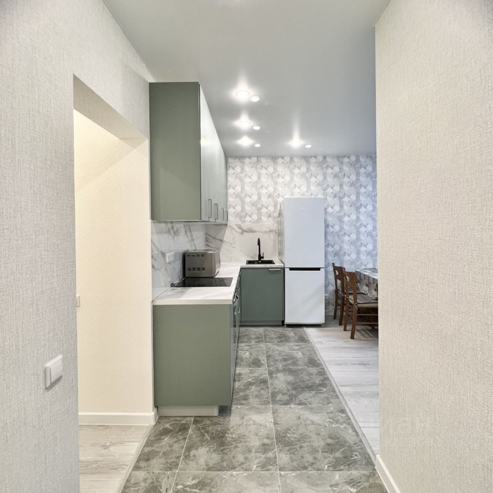 В квартире сделан качественный евроремонт, благодаря чему она выглядит стильно и современно.