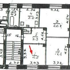 Продается комната 11,5м2 в трехкомнатной квартире, общей площадью 71,1м2, на втором этаже трехэтажного дома.