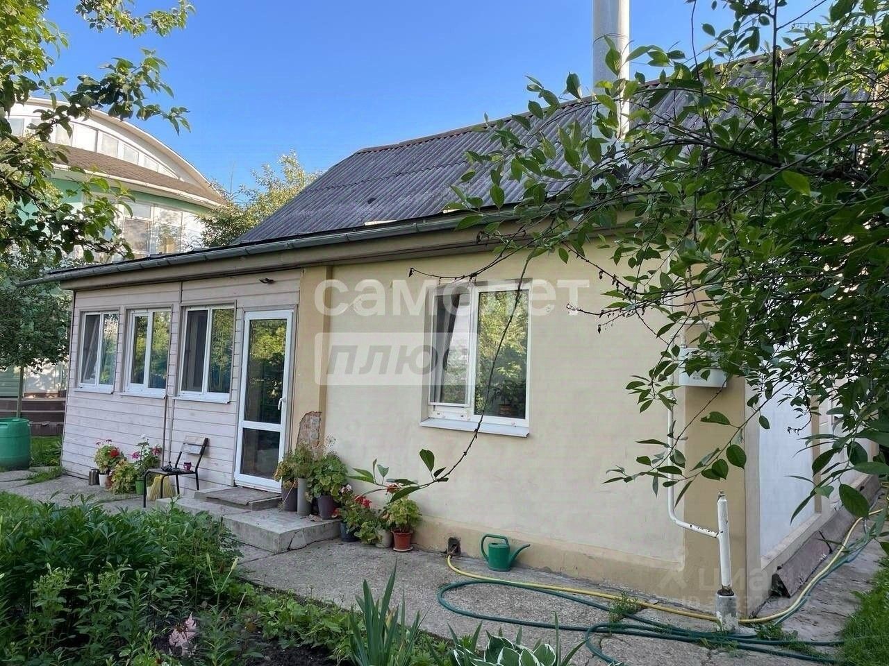 Основной дом (2005 г.) - тип дуплекс. 177 м²: цоколь, 2 этажа и мансарда. Просторная кухня-гостиная, три спальни, два санузла, и еще несколько помещений, добротная отделка. Во второй части дуплекса постоянно проживают соседи. Все коммуникации заведены отдельно. (отдельные лицевые счета)