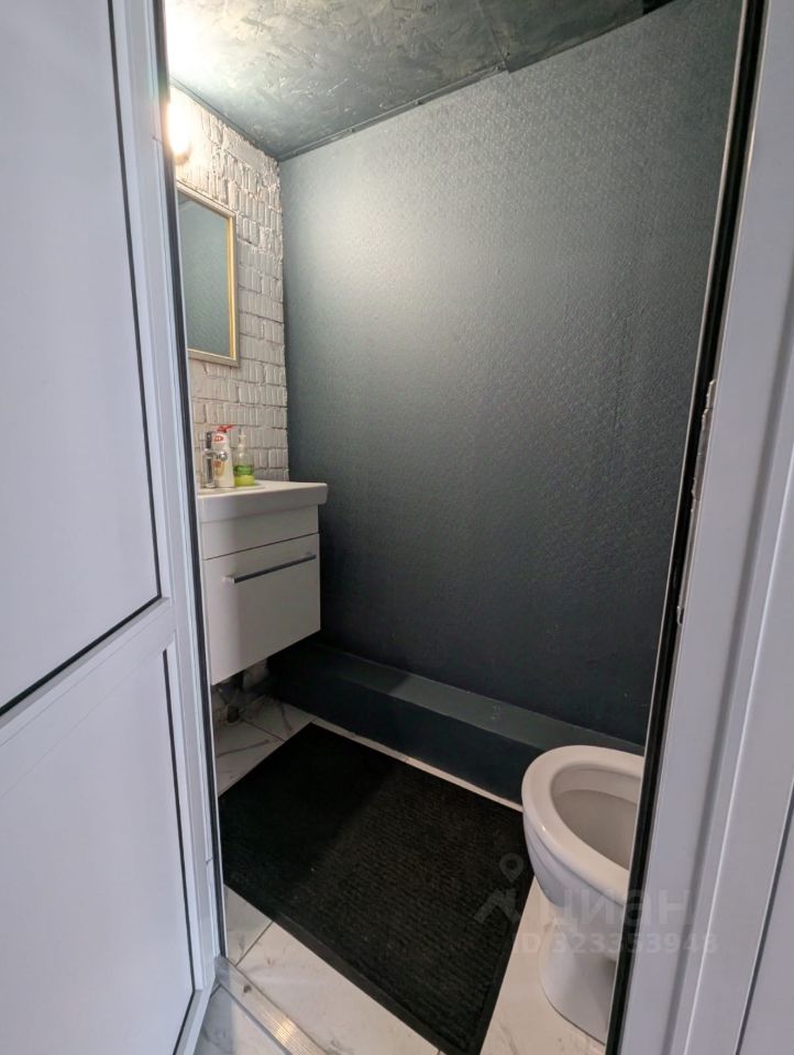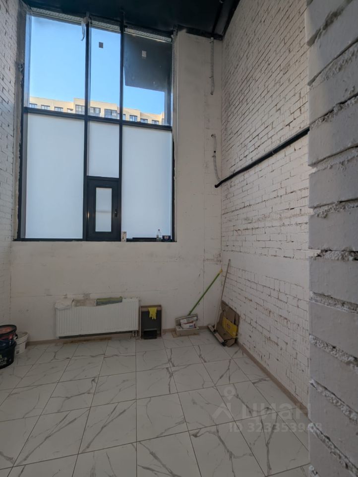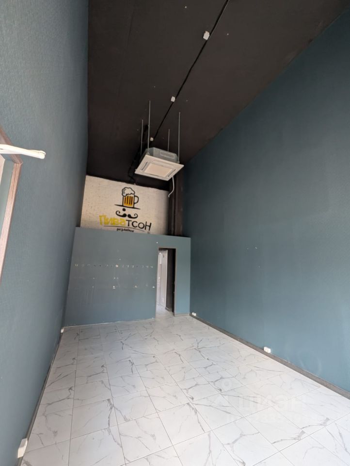 Площадь 44 метра, высота потолков 5,4 метра. Отдельный готовый санузел, отдельный электросчетчик. На полу керамогранит, полок покрашен, стены - обои покрашены в синий цвет (легко-можно перекрасить), под потолком действующая система кондиционирования. Удобное просторное подсобное помещение, в котором можно обустроить кухню, зону хранения.