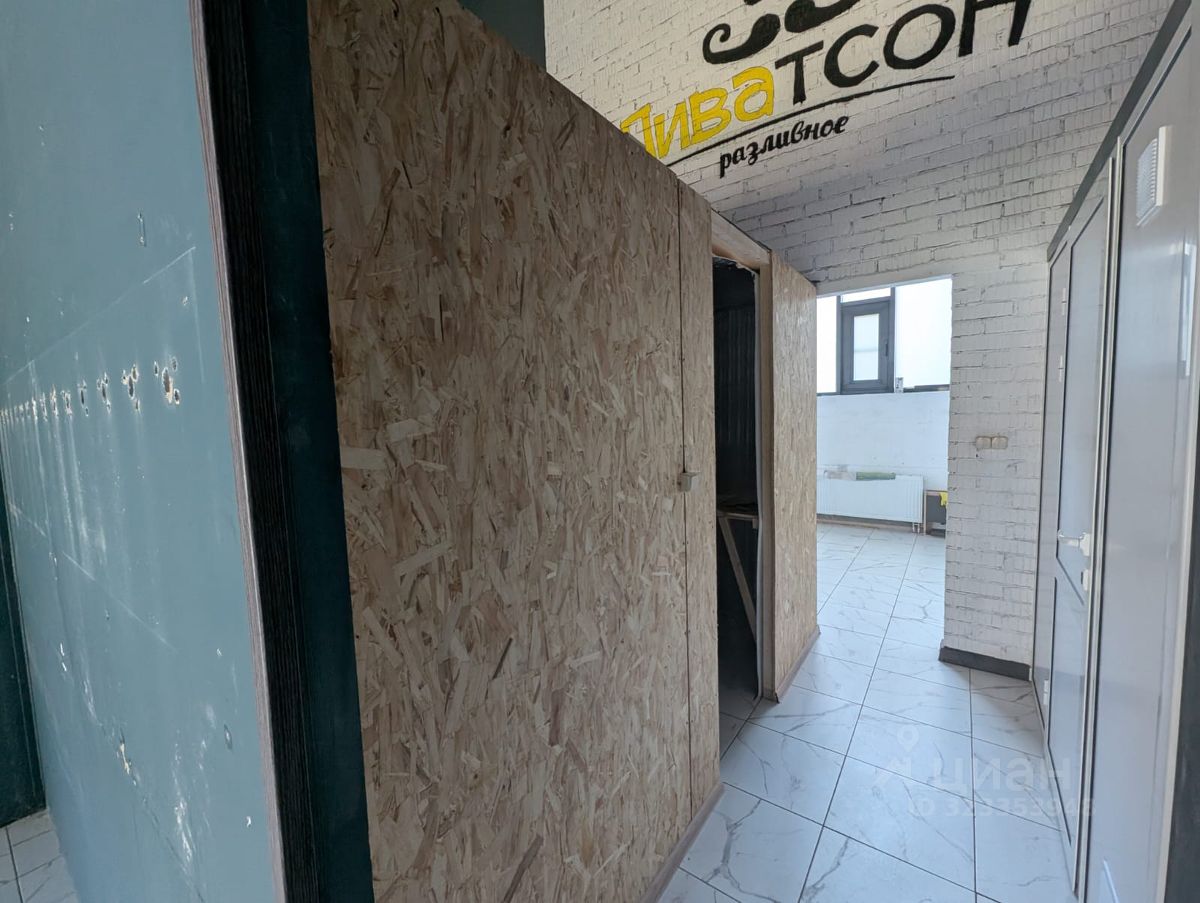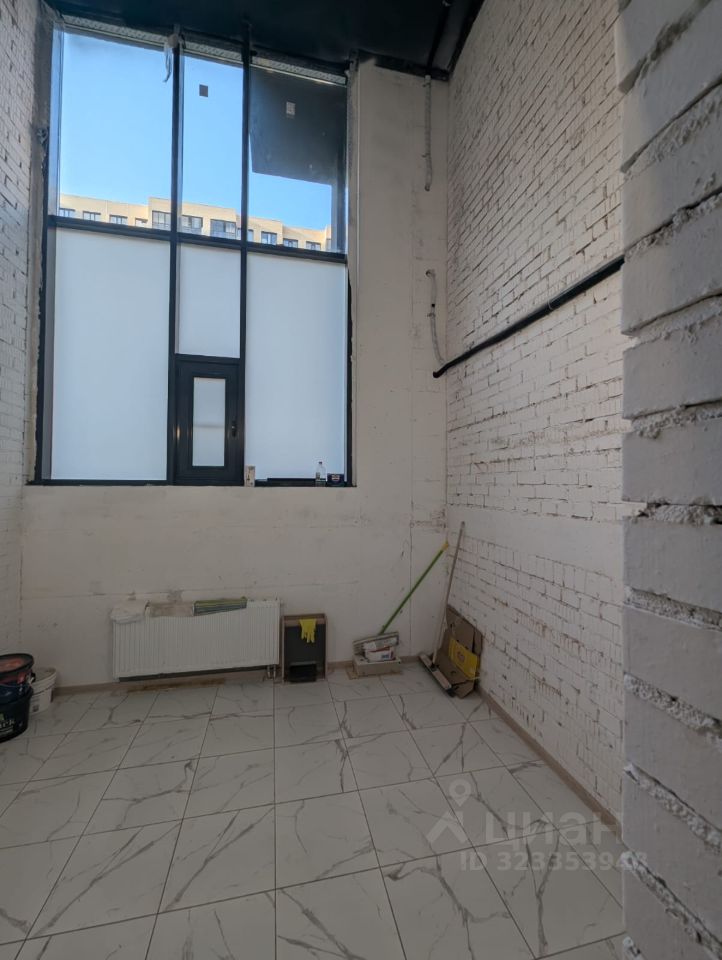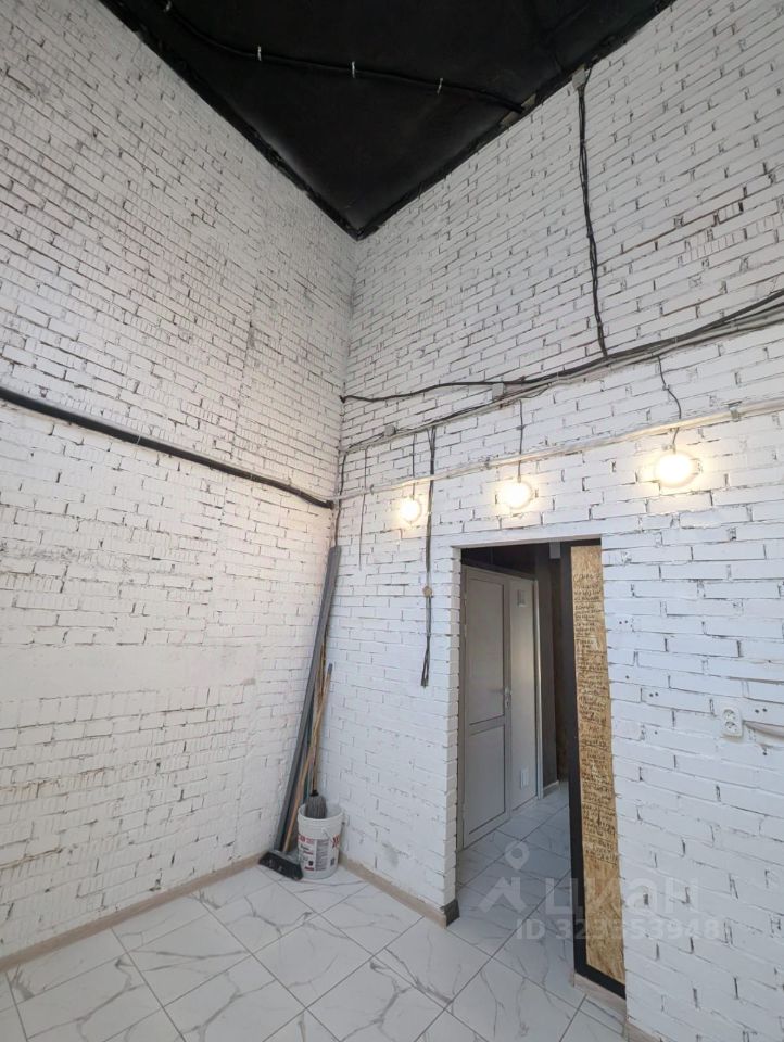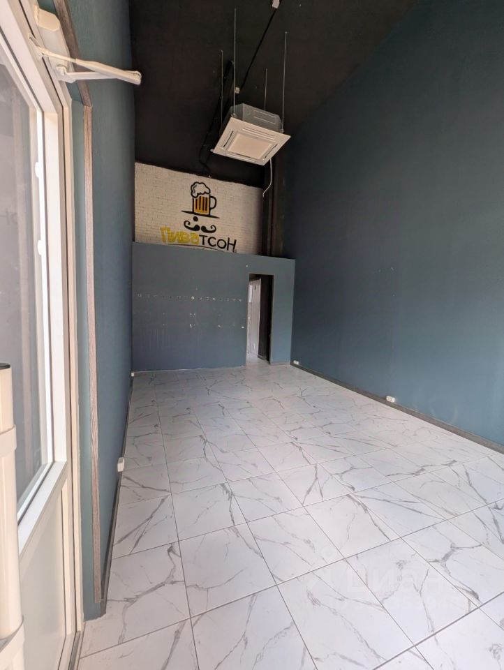 Площадь 44 метра, высота потолков 5,4 метра. Отдельный готовый санузел, отдельный электросчетчик. На полу керамогранит, полок покрашен, стены - обои покрашены в синий цвет (легко-можно перекрасить), под потолком действующая система кондиционирования. Удобное просторное подсобное помещение, в котором можно обустроить кухню, зону хранения.