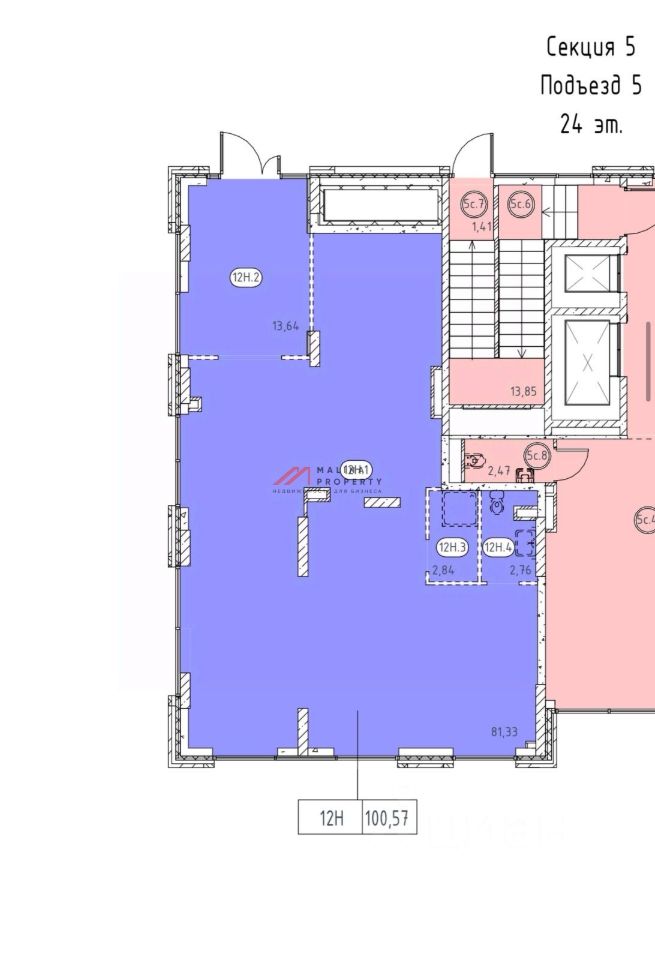 Угловое помещение 100,57 м2, располагается на 1 этаже, открытая планировка, отдельный вход с фасада, высота потолка 4,2 м, витринные окна по фасаду. Электрическая мощность 18 кВт. Парковка перед фасадом. Место для размещения рекламы.