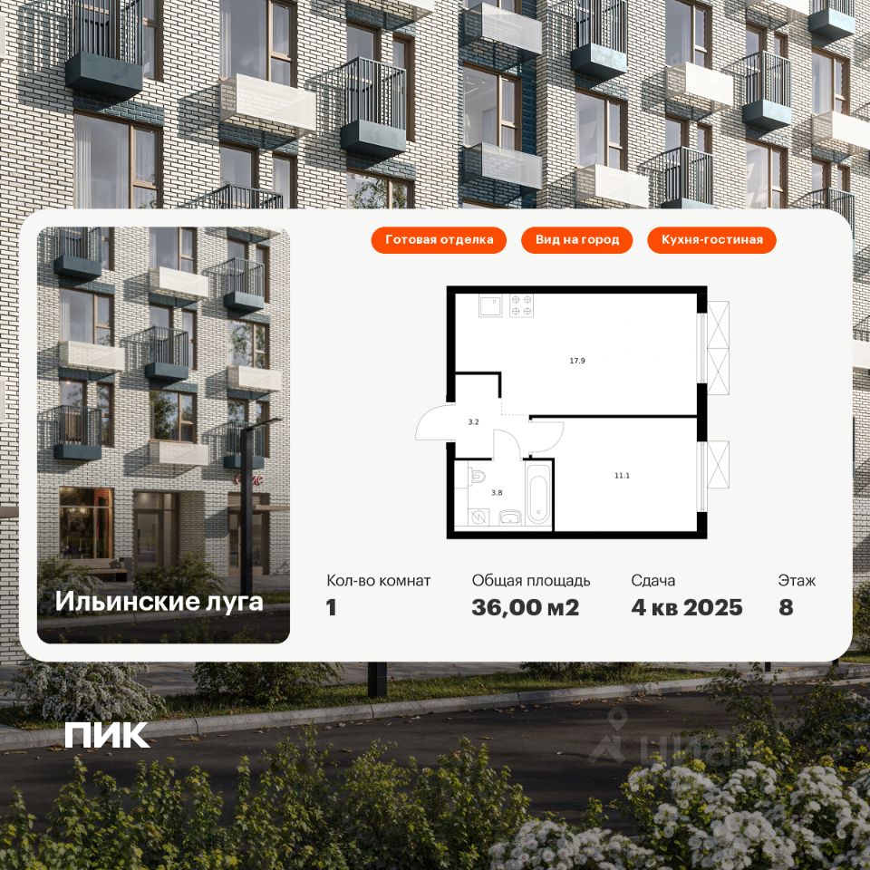 Продаётся 1-комн. квартира площадью 36 кв.м на 8 этаже 9 этажного дома (Корпус 2.9, Секция 2) проекта ПИК Ильинские луга. Светлый просторный подъезд на уровне земли, функциональная планировка, большие окна, c отделкой.