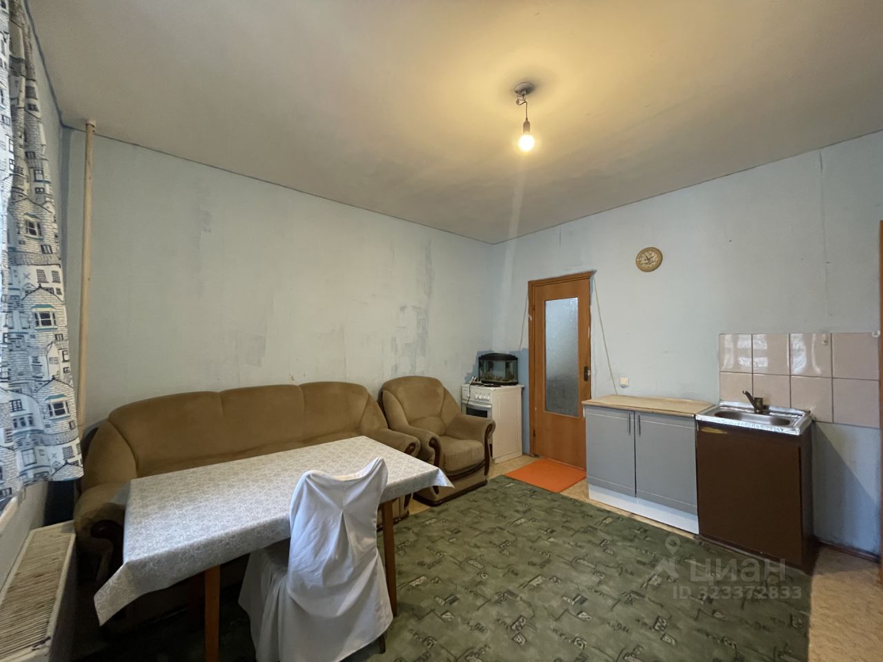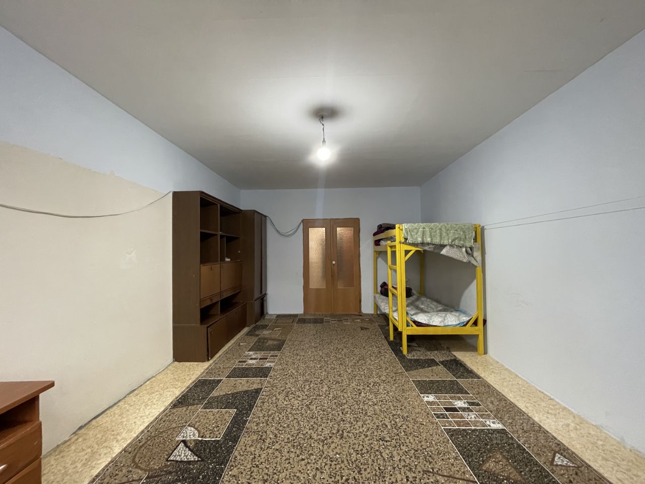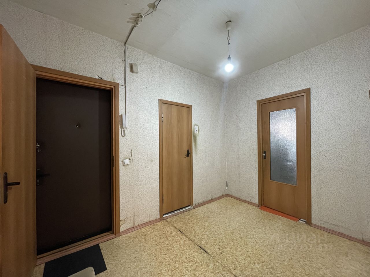 Ремонт муниципальный от застройщика: стены отштукатурены, электрика и сантехника разведены, на полу линолеум. В квартире два санузла: один гостевой, второй совмещенный с ванной.
