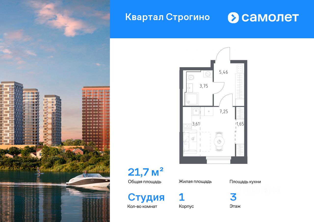 Строим кварталы для жизни с заботой о будущем. Предлагается квартира студия комфорт-класса 21,72 кв.м в корпусе 1 на 3 этаже, в ЖК ''Квартал Строгино'' Квартира с чистовой отделкой. Доступность дополнительных опций уточняйте у застройщика.