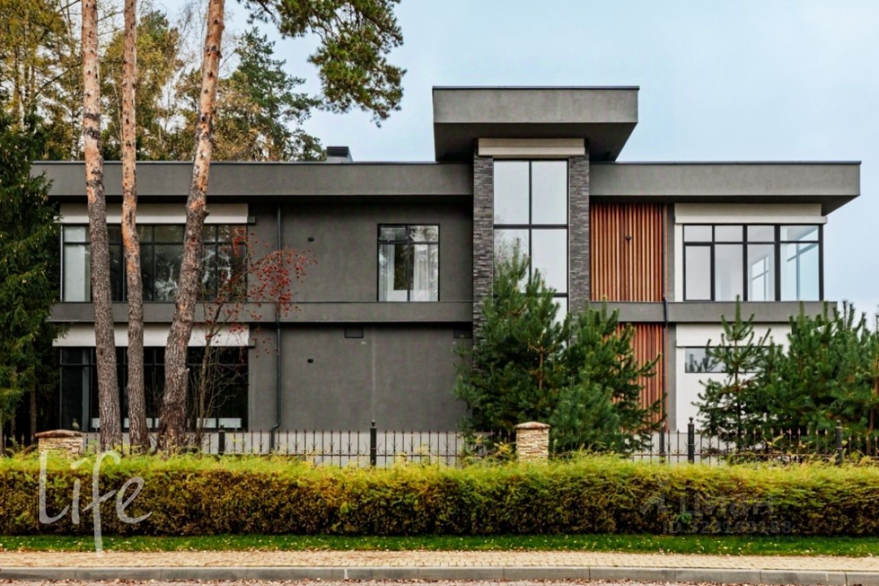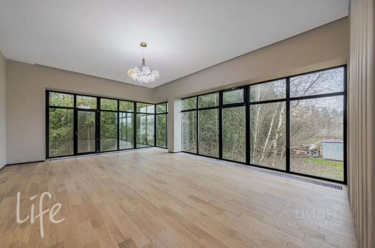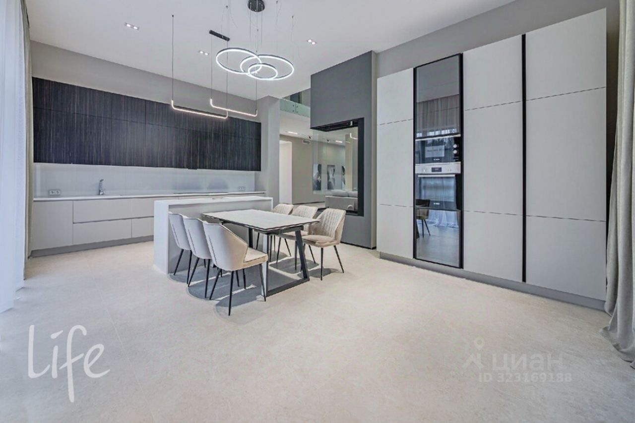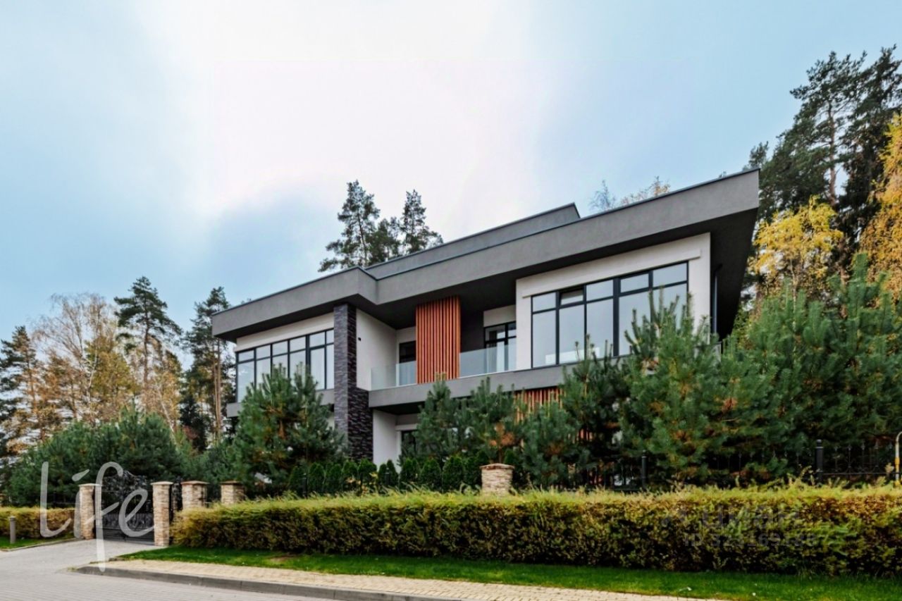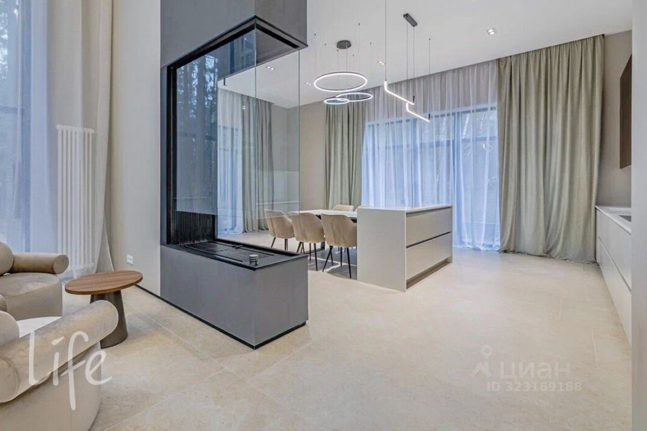 Коттеджный поселок премиум-класса ''Ренессанс парк''. Новый дом в стиле хай-тек, полностью под ключ, меблирован и оборудован всей необходимой бытовой техникой. Дизайнерский интерьер выполнен в современном стиле, в мягких, светлых тонах. Со вкусом подобрана мебель и аксессуары. Использованы современные световые решения. Гостиная с вторым светом, высота потолков около девяти метров, ее украшает двухсторонний камин.