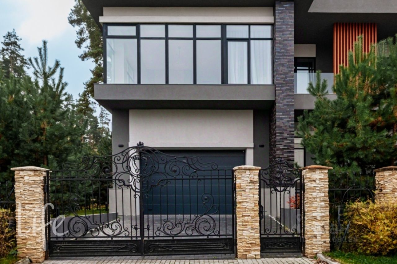 Планировка дома: 1 этаж: холл, гардеробная, гостиная с камином и вторым светом, кухня-столовая, кабинет/спальня, с/у, постирочная, котельная, СПА-зона с бассейном, сауной, зоной отдыха и с/у, гараж на два автомобиля, квартира для персонала. 2 этаж: холл, четыре спальни с гардеробными и с/у.