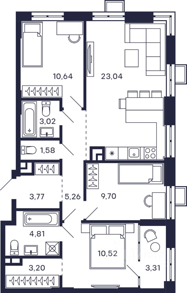 Продаётся 3-комнатная квартира в строящемся доме (Корпус 6), срок сдачи: II-кв. 2026, общей площадью 81.09 кв.м., на 5 этаже. Многофункциональный комплекс ''Тетрис'' будет построен в Красногорске - районном центре МО в Железнодорожном переулке.От ЖК до МКАД - примерно 2,7 км по Волоколамскому шоссе, до которого от комплекса менее 100 м.Ближе всего к ЖК находятся станции метро ''Мякинино'' (2,6 км), ''Волоколамская'' (3 км) ''Митино'' (3,3 км), чуть дальше - ''Пятницкое шоссе'', ''Строгино'', ''Спартак'' и ''Тушинская''.Всего 200 м от ЖК расположена железнодорожная платформа Павшино, от которой полчаса на электричке до Рижского вокзала (метро ''Рижская''), а до платформы Тушино (метро ''Тушинская'') - 10 минут. Около платформы Павшино есть и автовокзал.Так что добираться от комплекса до центра Москвы будет достаточно просто.