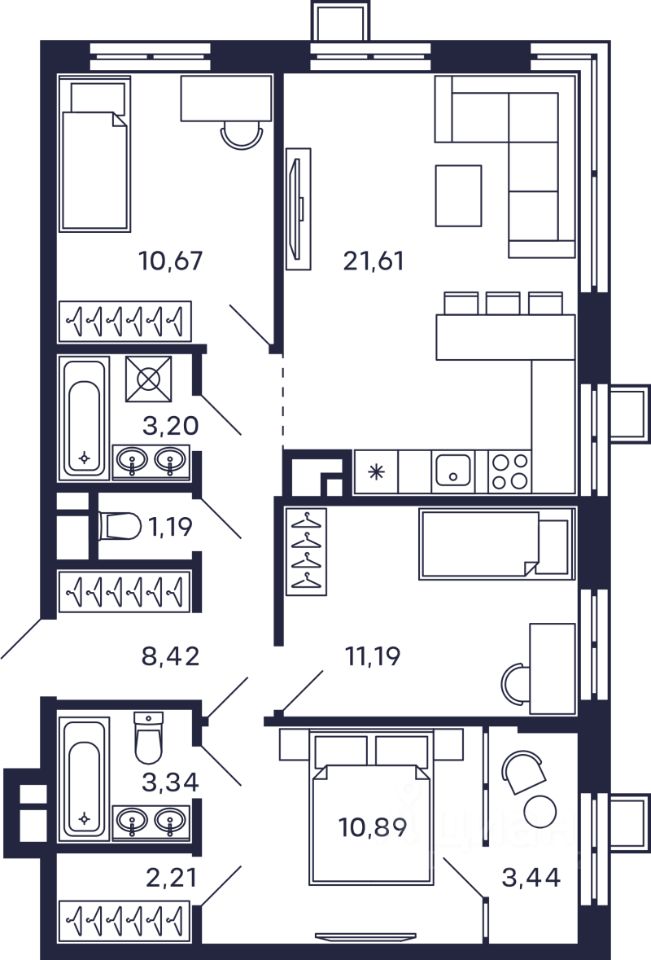 Продаётся 3-комнатная квартира в сданном доме ( 2 очередь (Корпус 8)), срок сдачи: II-кв. 2025, общей площадью 74.03 кв.м., на 24 этаже. Многофункциональный комплекс ''Тетрис'' будет построен в Красногорске - районном центре МО в Железнодорожном переулке.От ЖК до МКАД - примерно 2,7 км по Волоколамскому шоссе, до которого от комплекса менее 100 м.Ближе всего к ЖК находятся станции метро ''Мякинино'' (2,6 км), ''Волоколамская'' (3 км) ''Митино'' (3,3 км), чуть дальше - ''Пятницкое шоссе'', ''Строгино'', ''Спартак'' и ''Тушинская''.Всего 200 м от ЖК расположена железнодорожная платформа Павшино, от которой полчаса на электричке до Рижского вокзала (метро ''Рижская''), а до платформы Тушино (метро ''Тушинская'') - 10 минут. Около платформы Павшино есть и автовокзал.