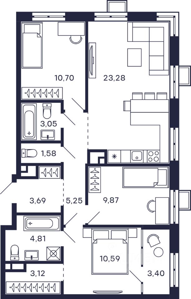 Продаётся 3-комнатная квартира в строящемся доме (Корпус 6), срок сдачи: II-кв. 2026, общей площадью 81.52 кв.м., на 23 этаже. Многофункциональный комплекс ''Тетрис'' будет построен в Красногорске - районном центре МО в Железнодорожном переулке.От ЖК до МКАД - примерно 2,7 км по Волоколамскому шоссе, до которого от комплекса менее 100 м.Ближе всего к ЖК находятся станции метро ''Мякинино'' (2,6 км), ''Волоколамская'' (3 км) ''Митино'' (3,3 км), чуть дальше - ''Пятницкое шоссе'', ''Строгино'', ''Спартак'' и ''Тушинская''.Всего 200 м от ЖК расположена железнодорожная платформа Павшино, от которой полчаса на электричке до Рижского вокзала (метро ''Рижская''), а до платформы Тушино (метро ''Тушинская'') - 10 минут. Около платформы Павшино есть и автовокзал.Так что добираться от комплекса до центра Москвы будет достаточно просто.