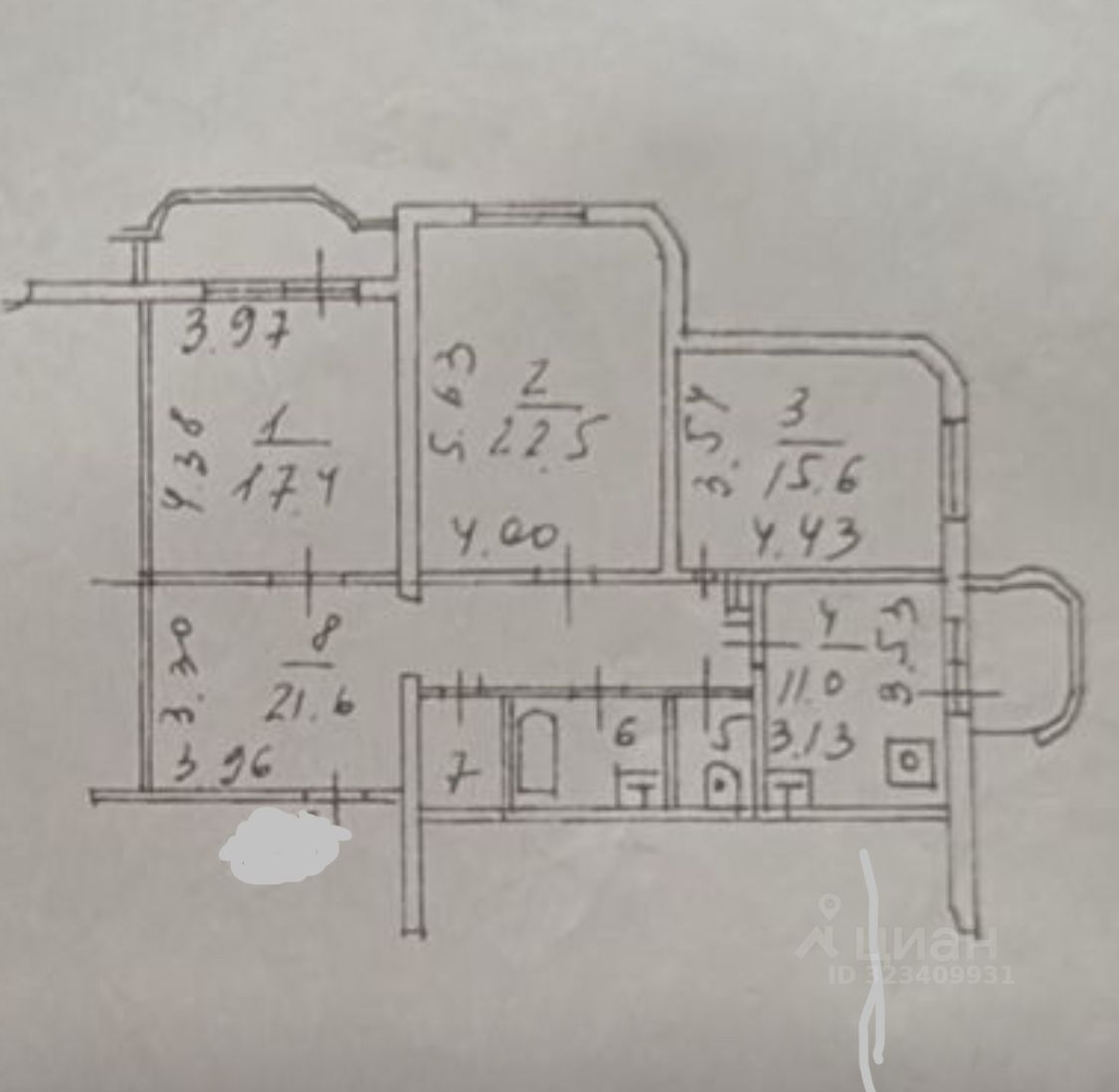 Площадь по ЕГРН 97,7 кв.м. + 2 лоджии.