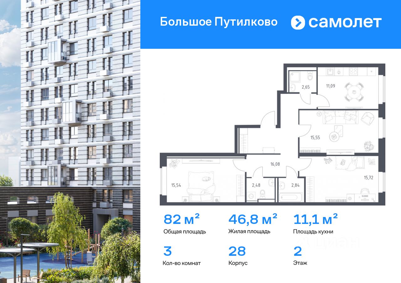 Строим кварталы для жизни с заботой о будущем. Предлагается 3-комнатная квартира комфорт-класса 81,95 кв.м в корпусе 28 на 2 этаже, в ЖК ''Большое Путилково'' Квартира с чистовой отделкой. Доступность дополнительных опций уточняйте у застройщика.