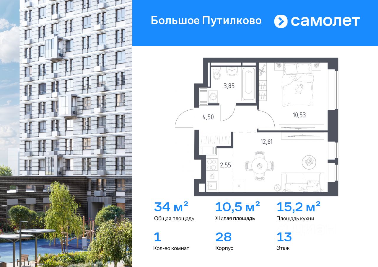 Строим кварталы для жизни с заботой о будущем. Предлагается 1-комнатная квартира комфорт-класса 34,04 кв.м в корпусе 28 на 13 этаже, в ЖК ''Большое Путилково'' Квартира без отделки. Доступность опции ''отделка'' и возможность комплектации мебелью и декором уточняйте у застройщика.