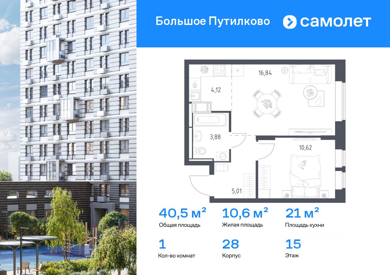 Строим кварталы для жизни с заботой о будущем. Предлагается 1-комнатная квартира комфорт-класса 40,47 кв.м в корпусе 28 на 15 этаже, в ЖК ''Большое Путилково'' Квартира без отделки. Доступность опции ''отделка'' и возможность комплектации мебелью и декором уточняйте у застройщика.