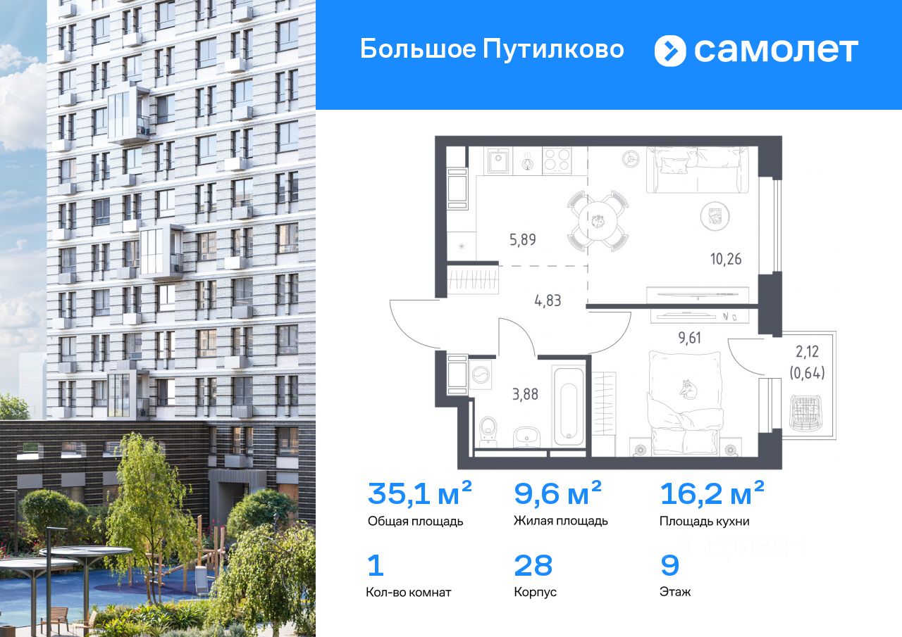 Строим кварталы для жизни с заботой о будущем. Предлагается 1-комнатная квартира комфорт-класса 35,11 кв.м в корпусе 28 на 9 этаже, в ЖК ''Большое Путилково'' Квартира без отделки. Доступность опции ''отделка'' и возможность комплектации мебелью и декором уточняйте у застройщика.