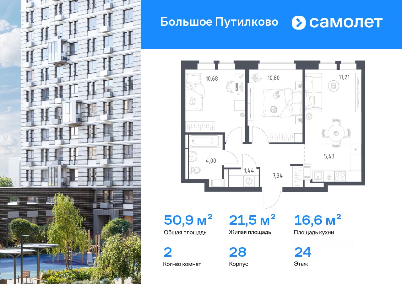 Строим кварталы для жизни с заботой о будущем. Предлагается 2-комнатная квартира комфорт-класса 50,9 кв.м в корпусе 28 на 24 этаже, в ЖК ''Большое Путилково'' Квартира с чистовой отделкой. Доступность дополнительных опций уточняйте у застройщика.
