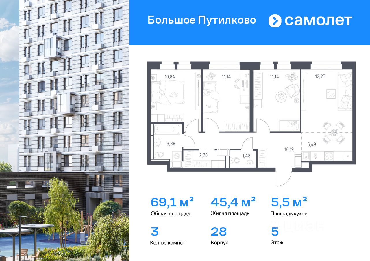 Строим кварталы для жизни с заботой о будущем. Предлагается 3-комнатная квартира комфорт-класса 69,09 кв.м в корпусе 28 на 5 этаже, в ЖК ''Большое Путилково'' Квартира с чистовой отделкой. Доступность дополнительных опций уточняйте у застройщика.