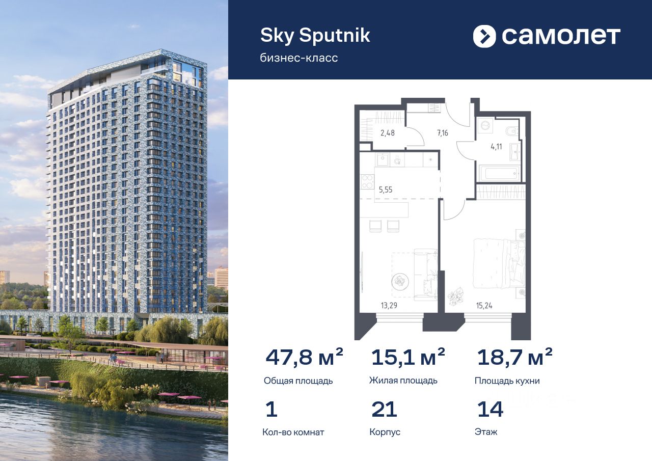 Строим кварталы для жизни с заботой о будущем. Предлагаются 1-комнатные апартаменты бизнес-класса 47,83 кв.м в корпусе 21 на 14 этаже, в Sky Sputnik Апартаменты с чистовой отделкой. Доступность дополнительных опций уточняйте у застройщика.