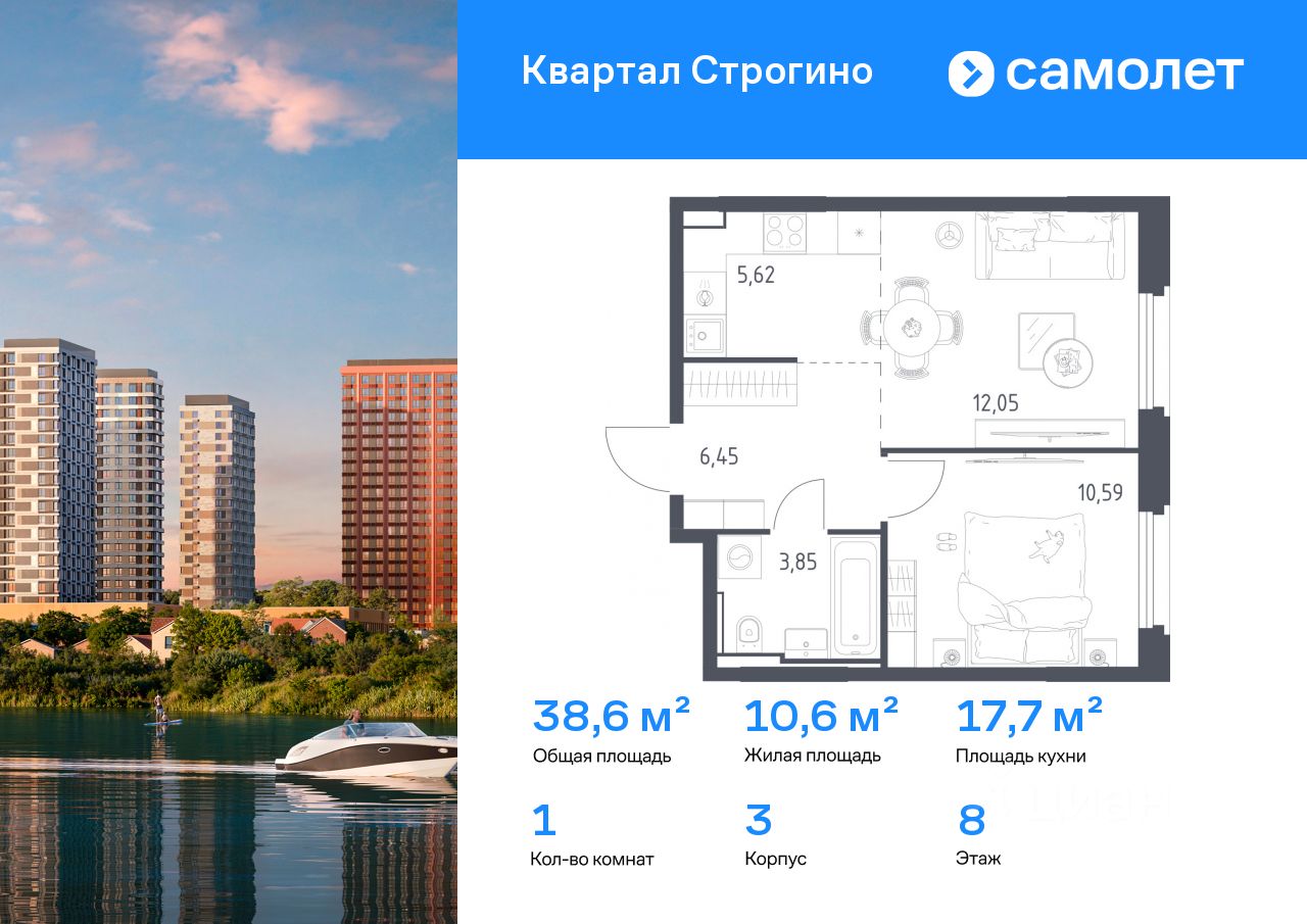 Строим кварталы для жизни с заботой о будущем. Предлагается 1-комнатная квартира комфорт-класса 38,56 кв.м в корпусе 3 на 8 этаже, в ЖК ''Квартал Строгино'' Квартира без отделки. Доступность опции ''отделка'' и возможность комплектации мебелью и декором уточняйте у застройщика.